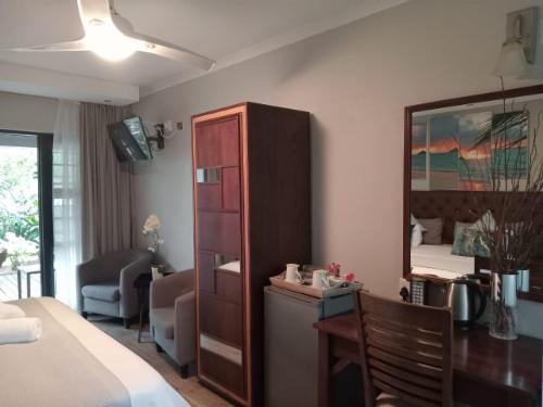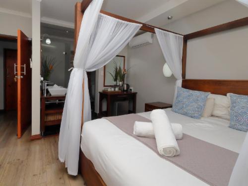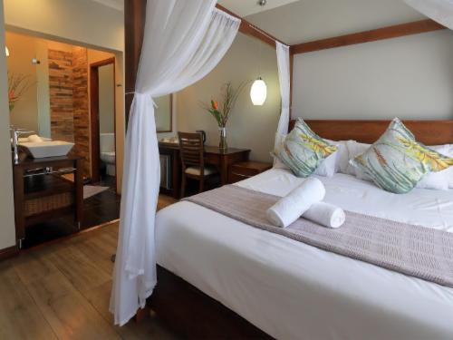 St Lucia Hilltop Guest House is a modern Guest House with an antique twist. We have spent a lot of time and effort to give St Lucia Hilltop Guest House a true character while enjoying the natural indigenous landscape that surrounds it. We take excellent care of our guests, especially at breakfast.Every detail and every corner of the interiors and exteriors are built with love and perfect taste. The fittings are immaculate and mindful. We have combined natural elements to our property, we offer a service that combines comfort and style with an ecological consciousness. W