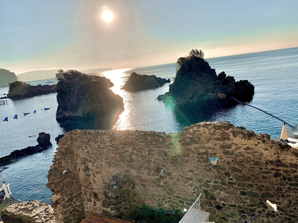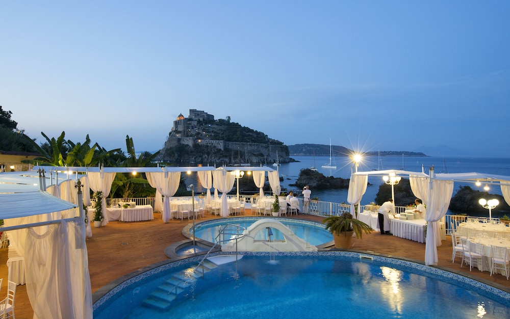 Set above the spectacular Bay of Cartaromana on the north-east coast of Ischia, this design hotel treats to beautiful views and a charming, elegant atmosphere. The combination of the surrounding nature and the famous natural thermal pools of the island make it a great choice for a truly relaxing holiday. One can spend hers/his mornings at the spa centre being treated to thermal aerosols, ozonising baths and inhalation all with the single goal of rejuvenating both the body and the mind. While the afternoons are reserved for lazing around the outdoor pool and sipping freshly squeezed juices from the poolside bar. Throughout the day Neapolitan, national and international specialities are served at the onsite restaurant, and in the evening the terrace is open for candlelit dinners overlooking the sea with a piano bar, plus unforgettable gala evenings.