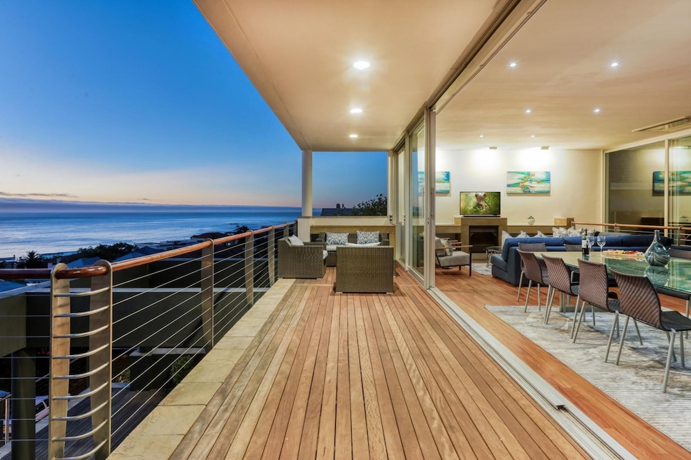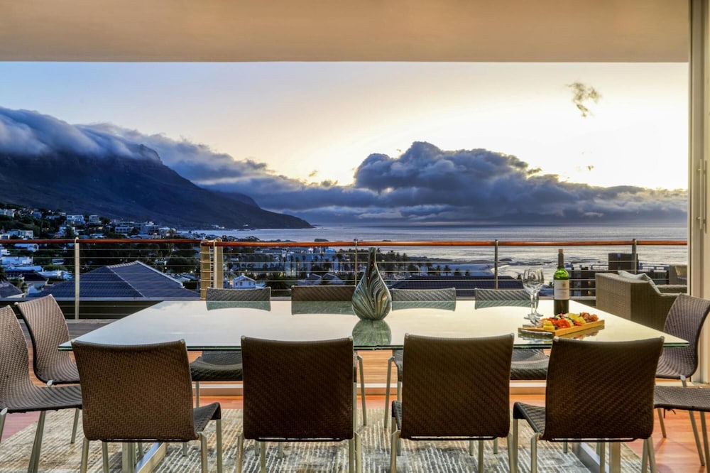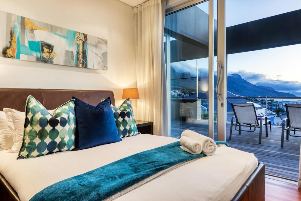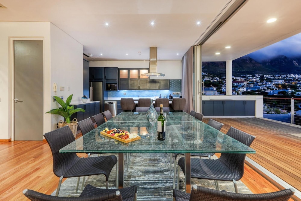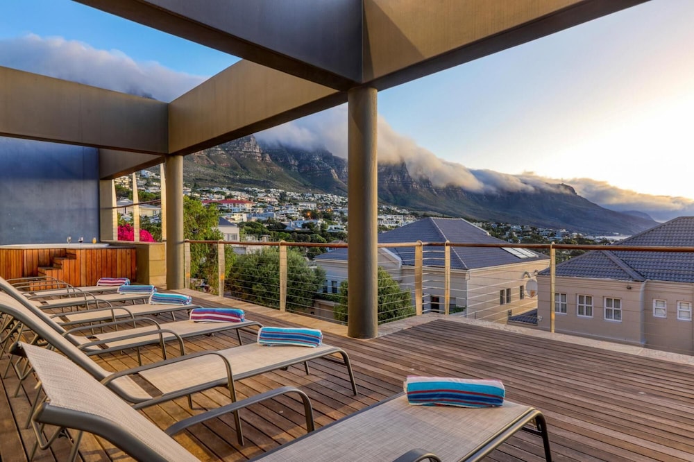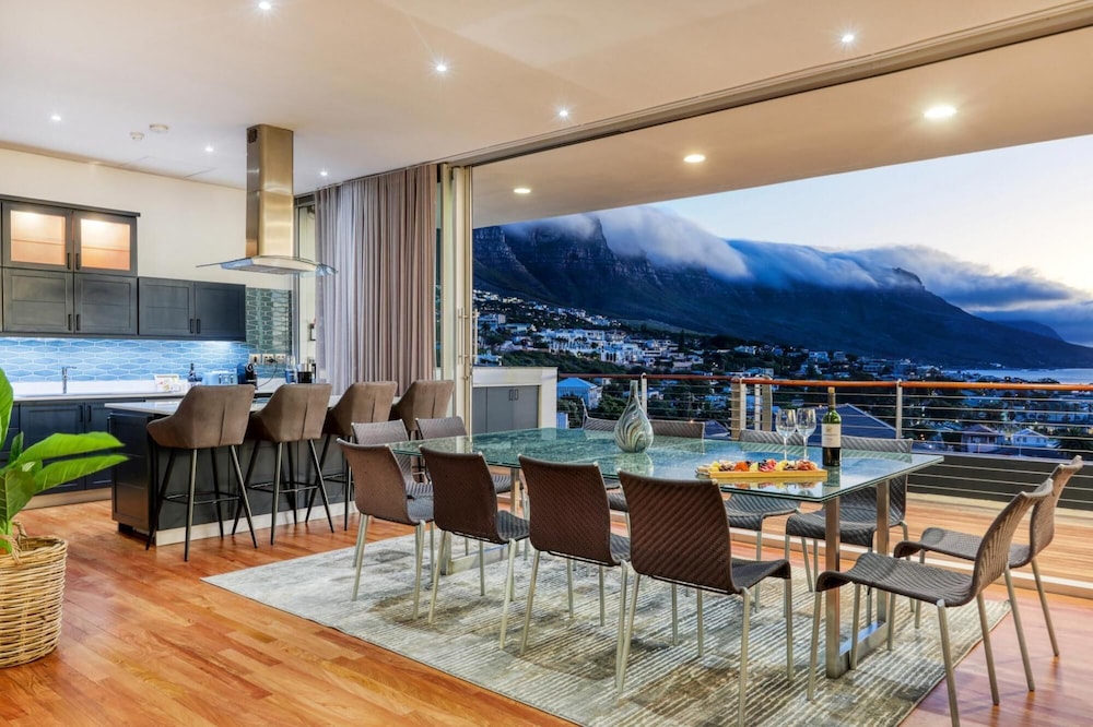 Strathmore House is a newly furnished, multi-storey villa located in the heart of Camps Bay, only five minutes’ walk from the beach. The fully furnished self-catering house offers full mountain and sea views, with ample space for a relaxing holiday. You enter the villa on street level and ascend firstly to the flatlet which has its own separate entrance and features a small living area, fully equipped kitchenette and two of the six bedrooms. From here you proceed to the next level where you will find the main entrance to the villa that is split over two levels. The four other be
