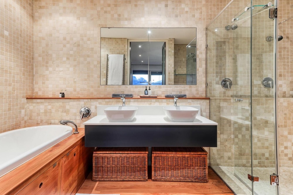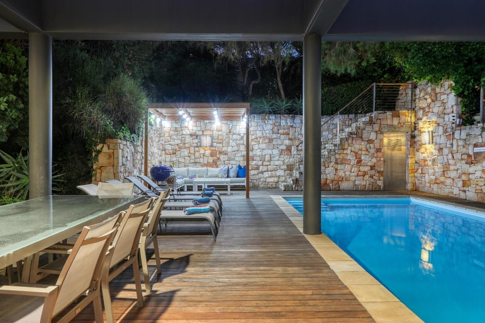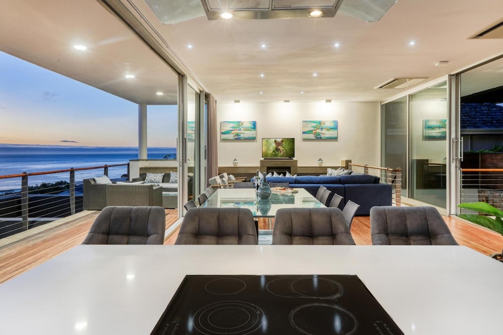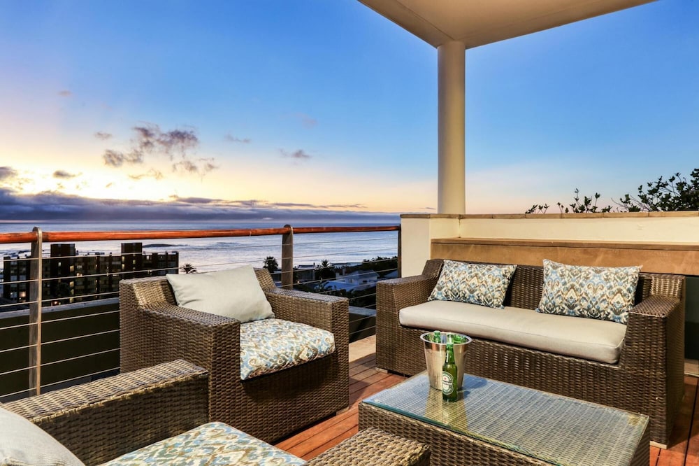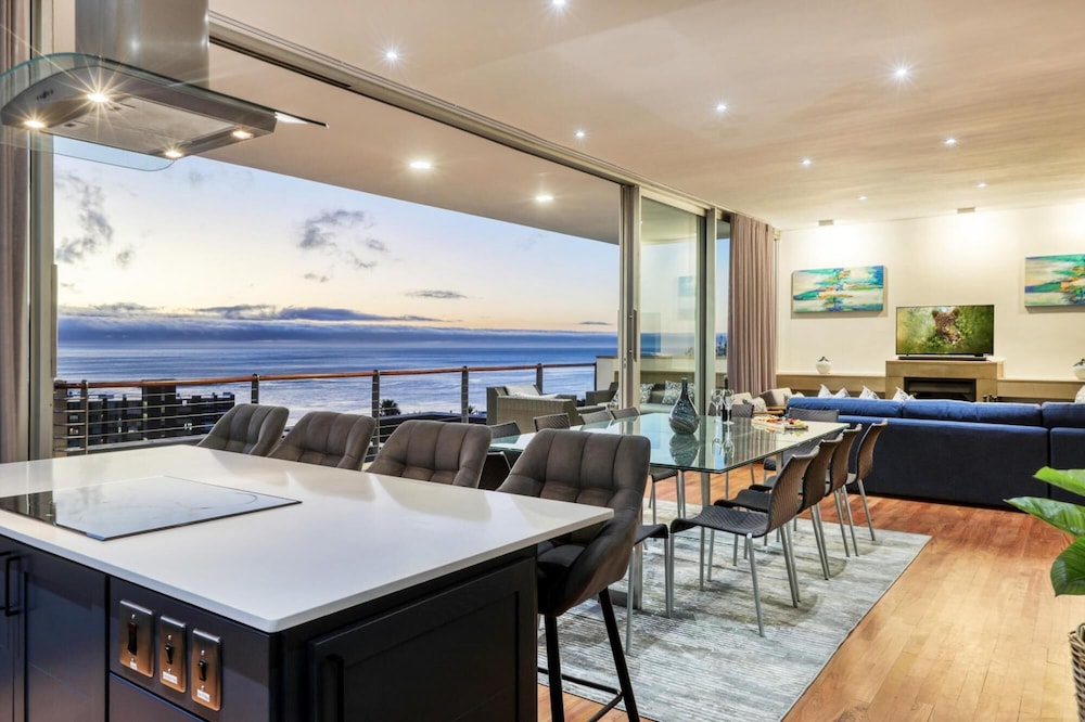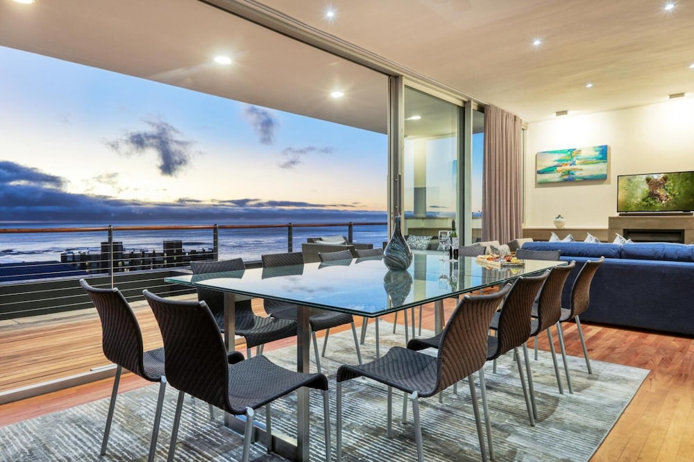 Strathmore House is a newly furnished, multi-storey villa located in the heart of Camps Bay, only five minutes’ walk from the beach. The fully furnished self-catering house offers full mountain and sea views, with ample space for a relaxing holiday. You enter the villa on street level and ascend firstly to the flatlet which has its own separate entrance and features a small living area, fully equipped kitchenette and two of the six bedrooms. From here you proceed to the next level where you will find the main entrance to the villa that is split over two levels. The four other be
