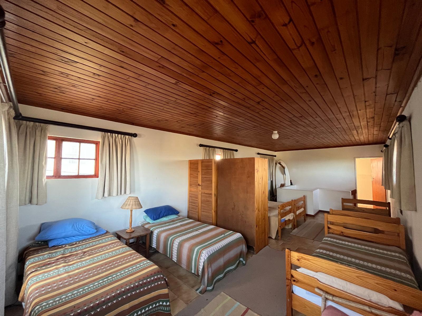 The Struishuis is a family friendly self-catering home that is centrally located in a peaceful area in Struisbaai, with great sea views.Ideal for a family holiday or a group of friends, this home can accommodate up to thirteen guests and contains 4 bedrooms and two bathrooms. The first and second bedrooms each contain a double bed. The third bedroom contains a double bed and an additional single bed. The fourth bedroom contains six single beds, and an en-suite bathroom with a shower. The second bathroom is shared by the other three bedrooms, and has a bath and a shower.