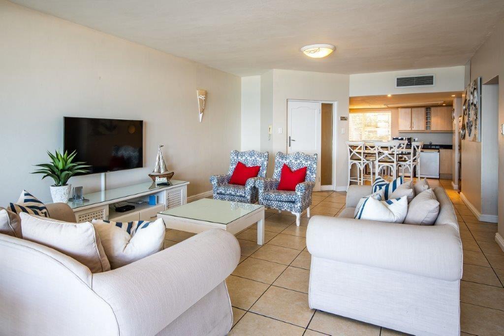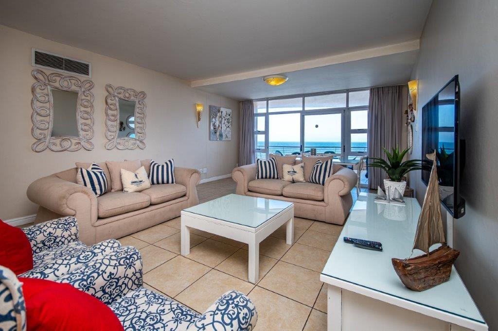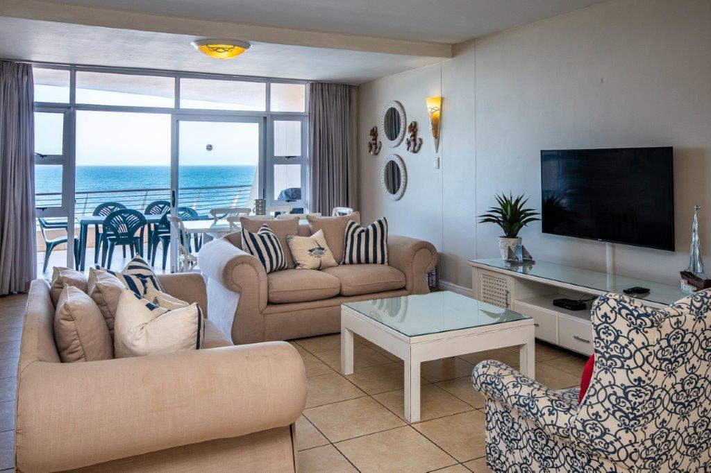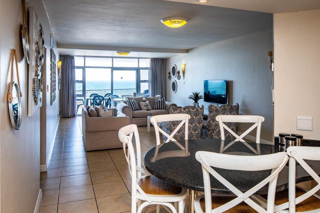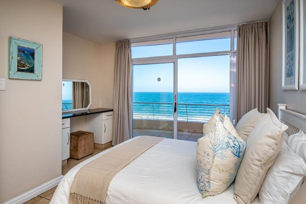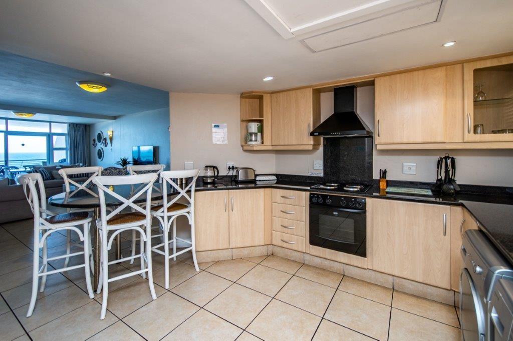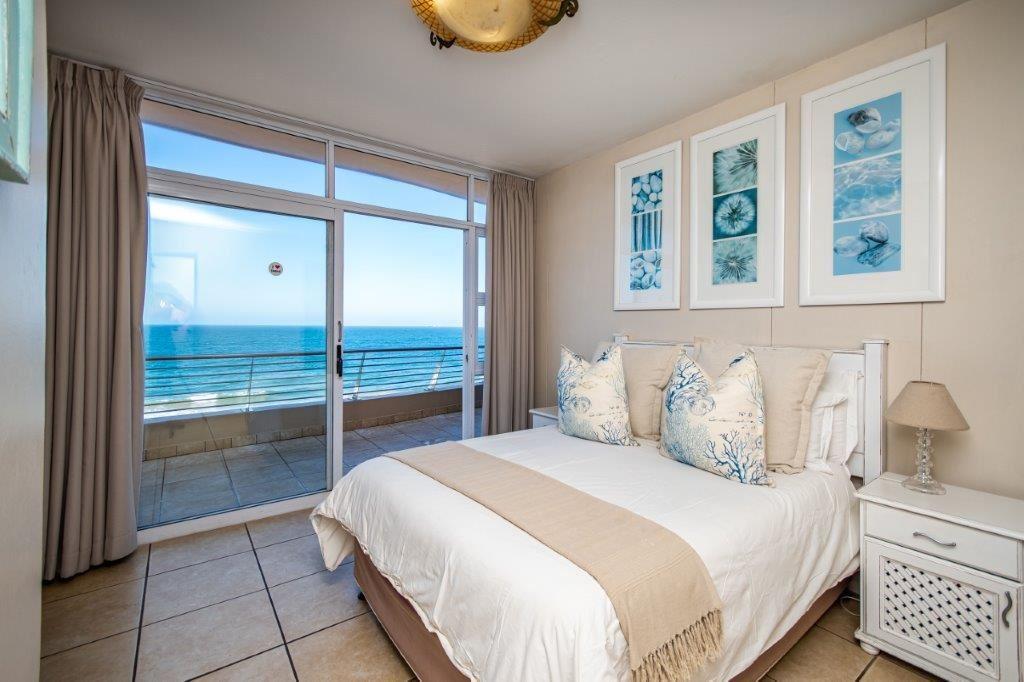 The three-bedroom apartment features a fully equipped kitchen, a lounge with selected DStv channels, a six-seater dining table, and a spacious balcony with superb sea views. The abode also offers guests laundry amenities, communal braai facilities, and parking on the premises.