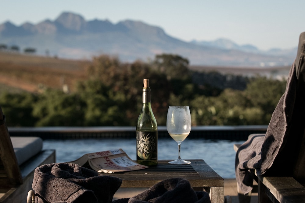 Guest rooms have been decorated with elegant contemporary touches and feature an en-suite bathroom with shower and/or bath, queen-size or twin beds, air-conditioning and ceiling fan, complimentary toiletries, hairdryer, tea and coffee station, DStv, international direct dial telephone, wireless Internet, electronic safe deposit box, and courtyard, garden or mountain/vineyard views.