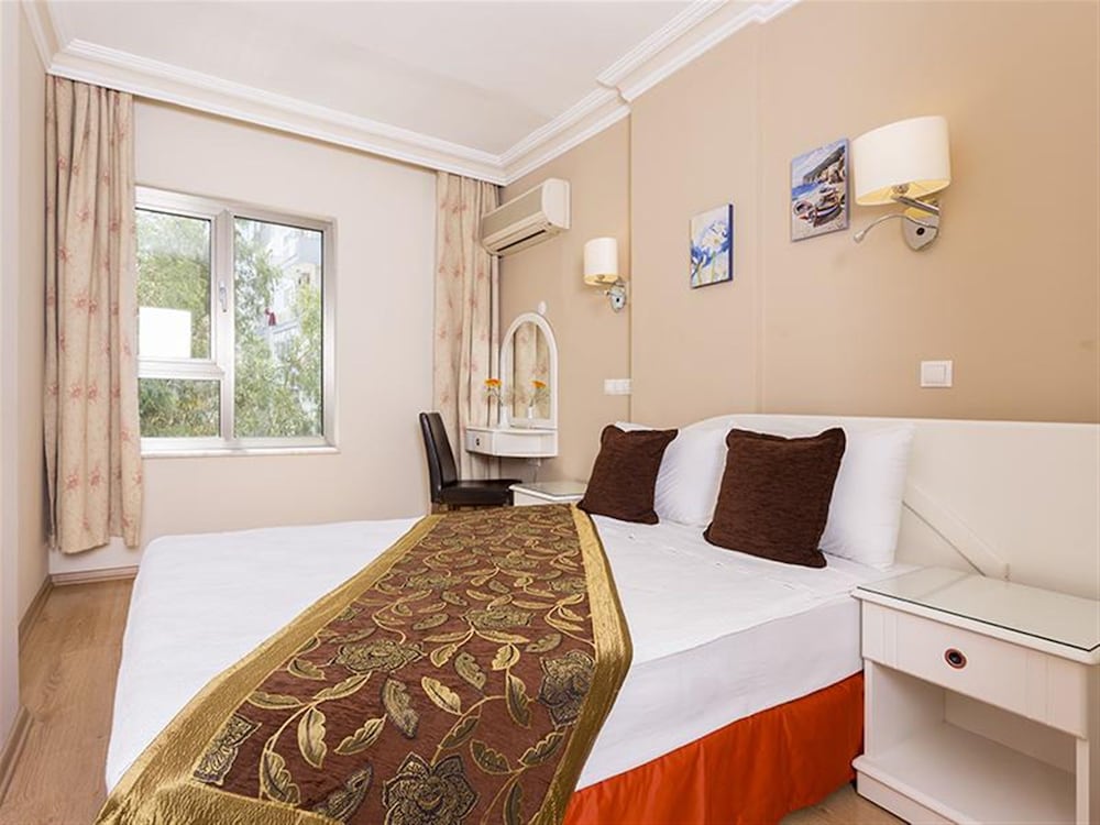 Services and facilities: Table tennis, pool, safe, reception, elevator, restaurant, bar, parking, garden, Internet access, WI-Fi Wireless LAN, car rental, dry cleaning and fax. Room facilities amenities: A/C, shower, telephone, mini bar and satellite TV. ** Please note that some of the above facilities may be closed due to weather / seasonal conditions.**Address: Teomanpasa Str. No.53, 3688 Antalya, Turkey