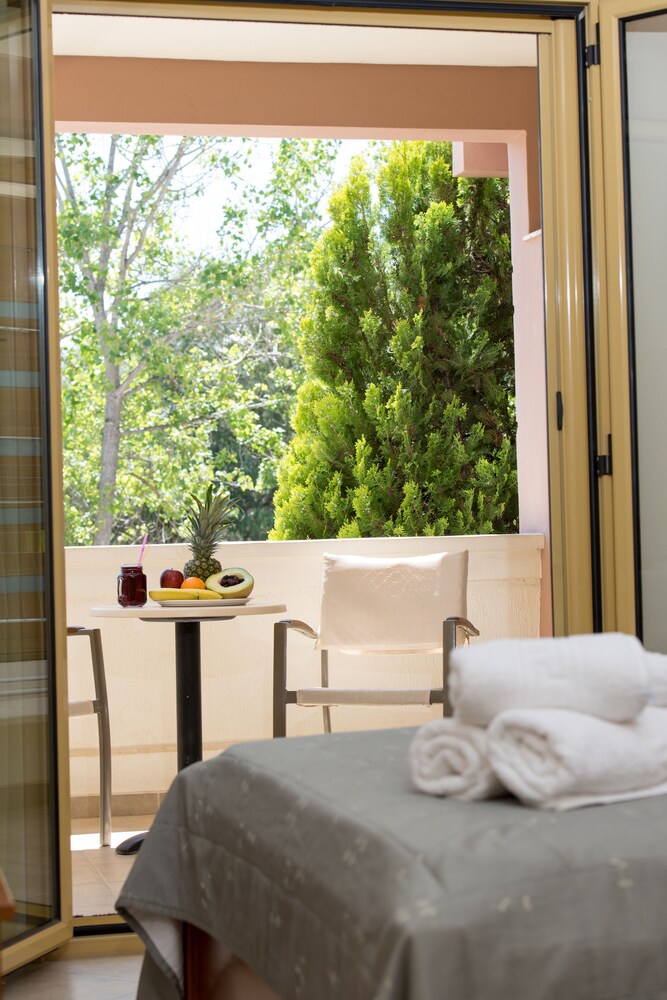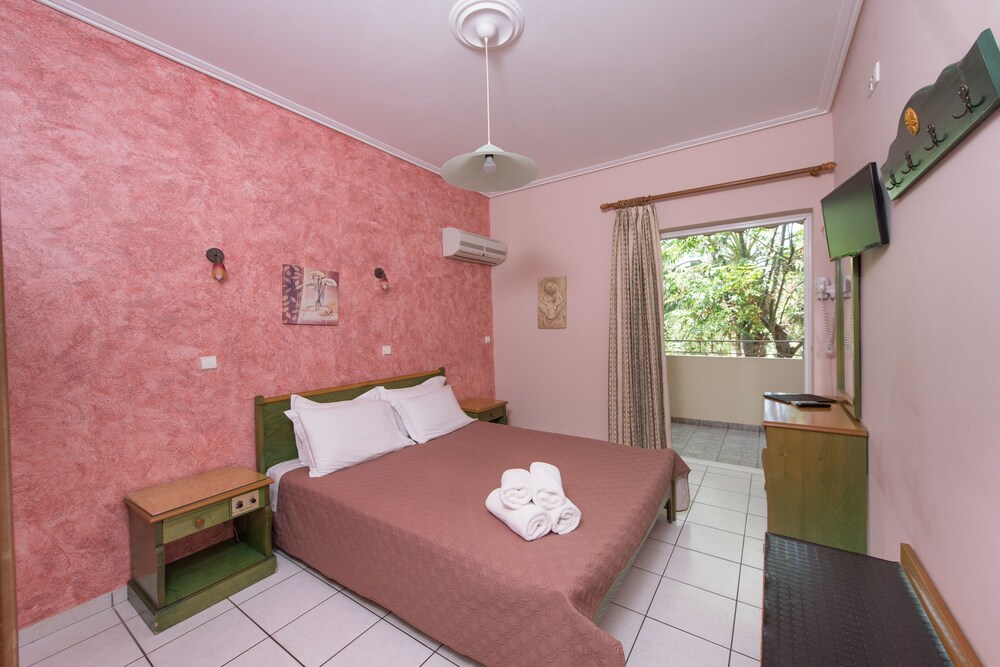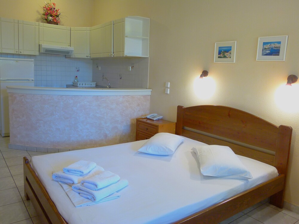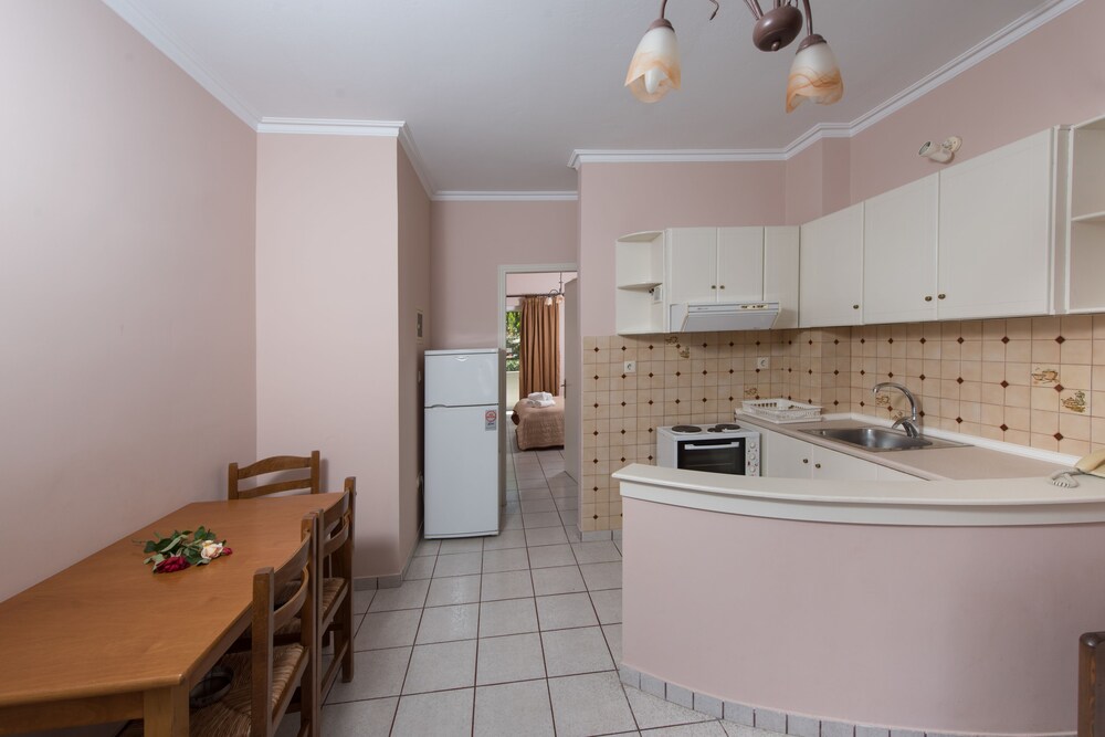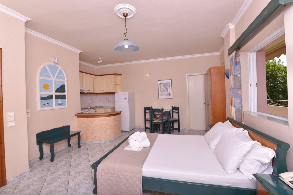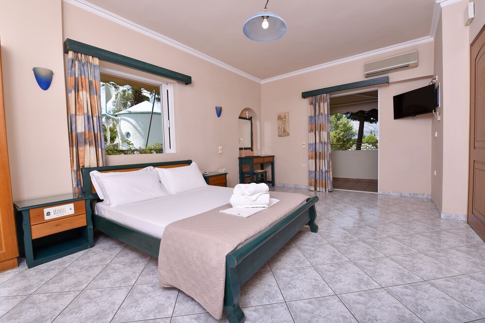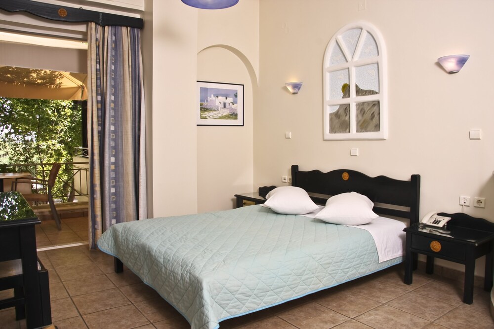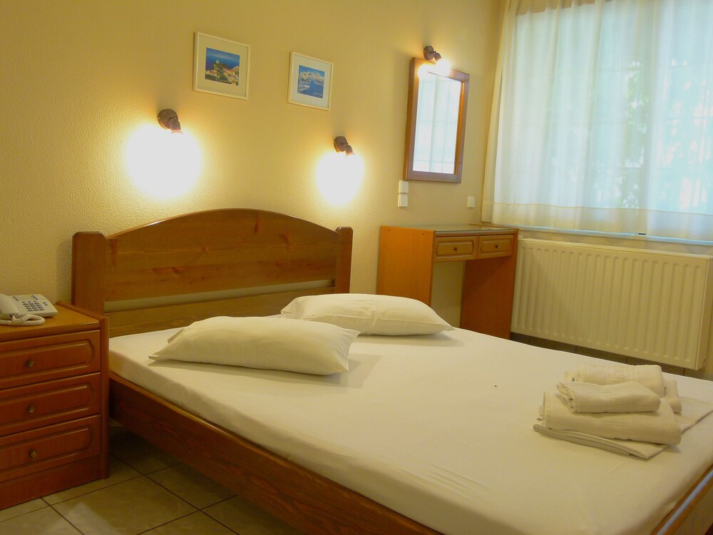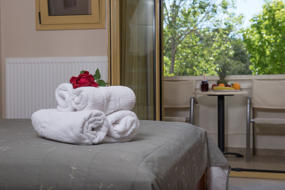 Located in Eretria Sun Rise Hotel is just 150 metres from the nearest beach. Surrounded by lush greenery it has a large outdoor pool with a poolside bar. Sport facilities include tennis and basketball courts.All air-conditioned studios and apartments open to a balcony with views to the pool garden or mountain. They include a well-equipped kitchenette satellite TV and hairdryer. Some also come with a fireplace with free logs.Guests can choose among 6 different breakfast menus which can be enjoyed at the privacy of the units at a charge throughout the day.Sun Rise Hotel Apartments offers free Wi-Fi throughout. Guests can use the communal BBQ.Several taverns shops and water sports are available at 500 metres from the property. Eretria is 20 km from Chalkida. Free private parking is possible on site.