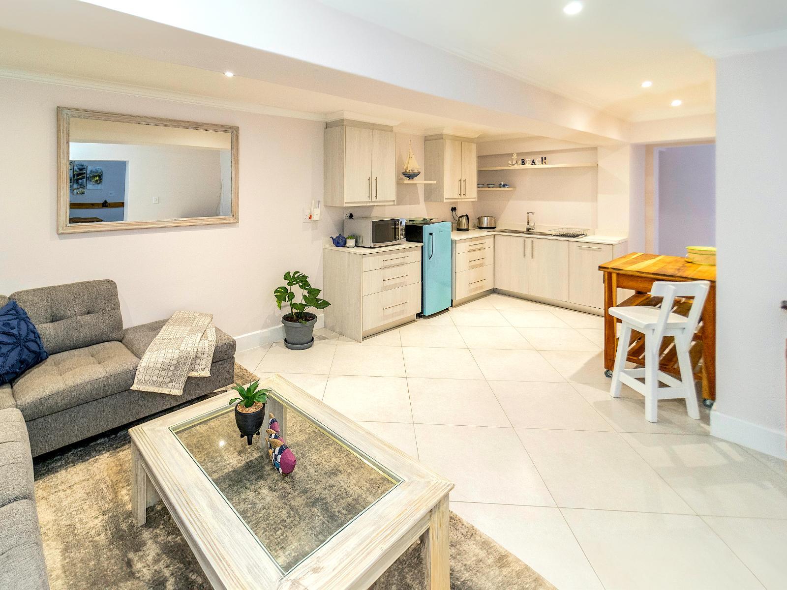 The cosy studio apartments contain a luxury queen-size or king-size bed that can convert to twin beds, opening to a communal verandah with a built-in braai for their exclusive use with easy access to the swimming pool. Each studio has a kitchenette with a microwave, bar fridge and tea and coffee facilities. The en-suite bathrooms are fitted with spacious showers and toilets.