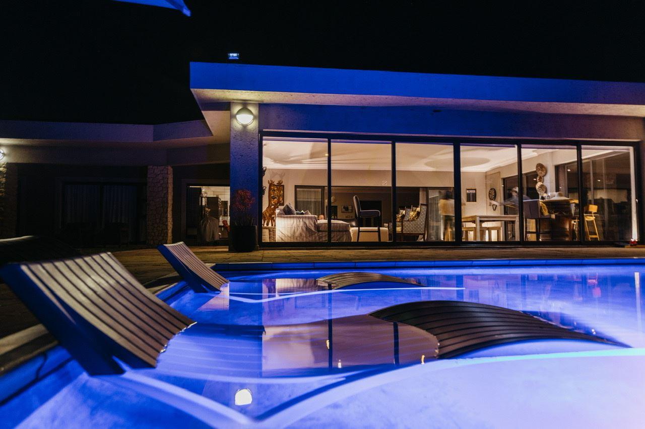 Tandweni Villa is an exclusive use property in the Pongola Game Reserve on the banks of Jozini Dam. The Villa has five luxury rooms with five bathrooms, all rooms open up onto a veranda with outdoor furniture creating the perfect spot to relax and enjoy the incredible views over jozini dam. The large open plan living space leads onto a fully glazed sun lounge with daydeb, pool table, table tennis, bar, & darts. The perfect entertainment room which opens up onto the swimming pool. We've recently renovated out pool & pergola area and created a truly glamorous outdoor living space. Th