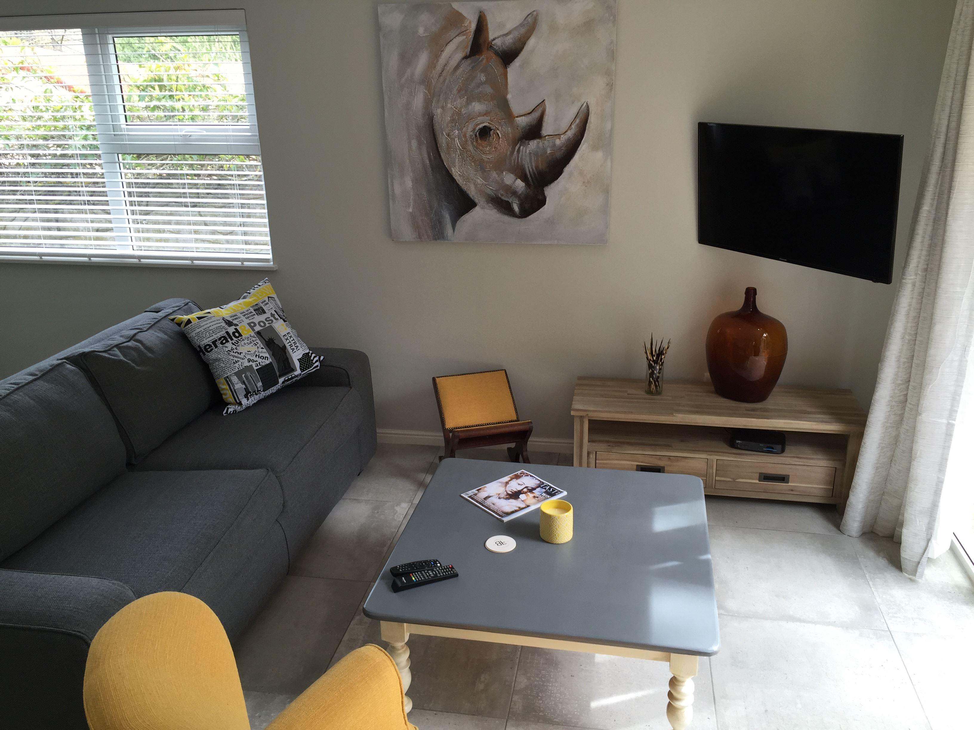 The garden studio comprises of a king-size bed, a bathroom with a shower, a well-equipped kitchen, a dining space, and a lounge with DStv. The accommodation also offers guests braai facilities, a swimming pool, and parking on the premises.