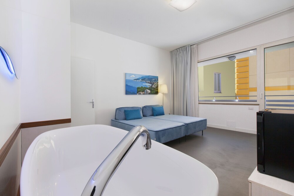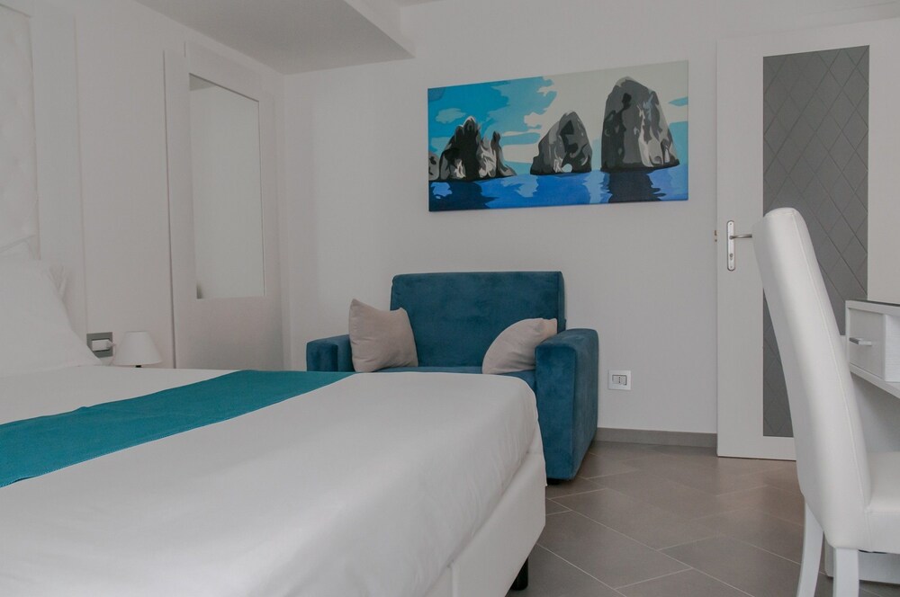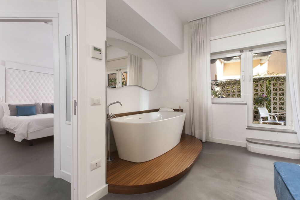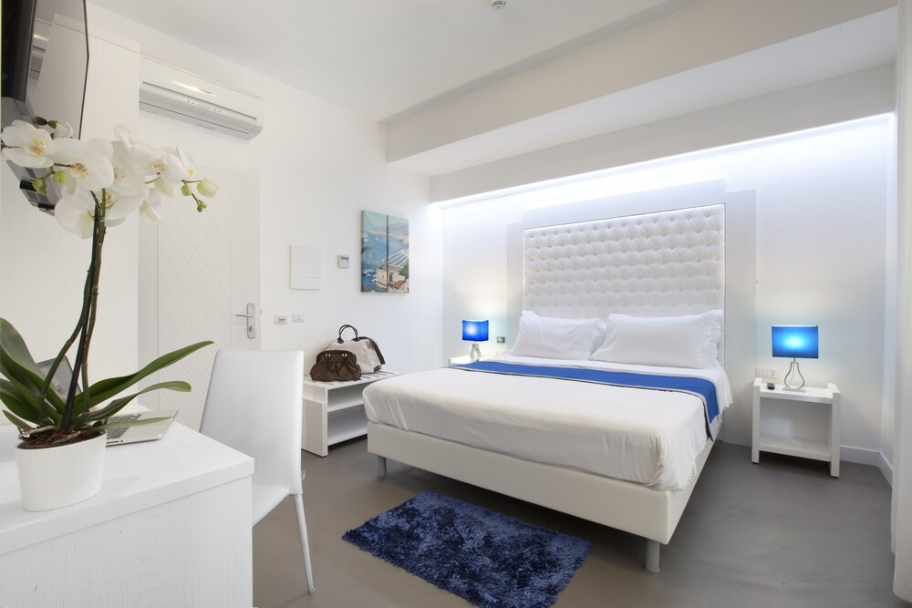 This hotel is beautifully located in the historical centre of Sorrento. The hotel is located just 1 km away from the harbour, where guests can take a short boat ride to the mesmerising island of Capri. The hotel is situated just 500 metres away from Sorrento Train Station. Guests can explore the captivating Amalfi Coast, taking a trip to the nearby picturesque town of Positano. This wonderful hotel comprises tastefully-designed guest rooms, which are bright and simplistic in style. The rooms feature a small terrace, which enjoys beautiful views over the surroundings. This wonderful hotel affords guests a number of excellent facilities and services, enhancing each stay with comfort and convenience.