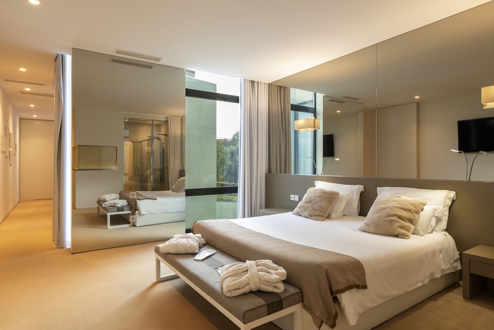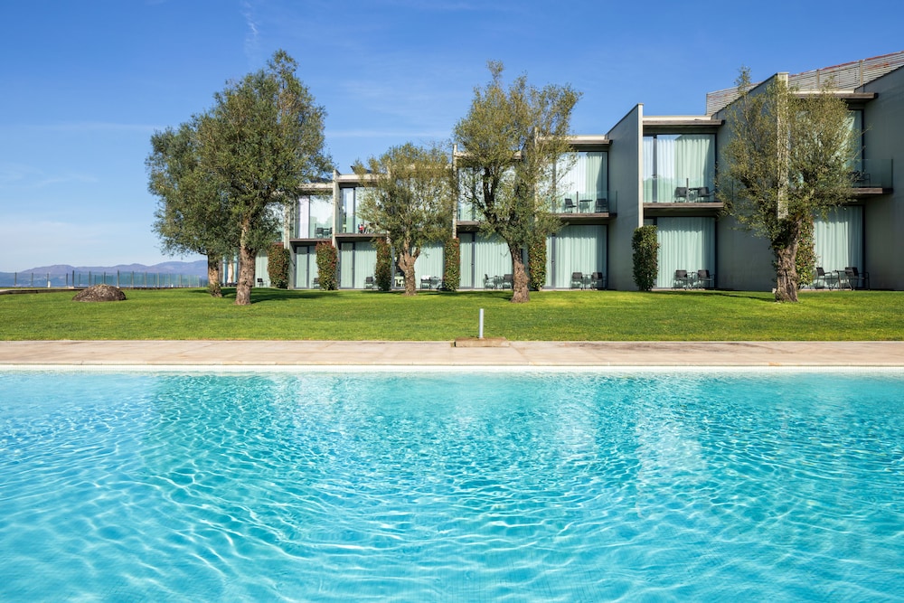This trendy and stylish hotel is perched high on a hilltop and has fantastic views of its surroundings. Just 3 kilometres from Ponte da Barca picturesque town, this modern property is very near Lima River and close to other beautiful and inspiring towns like Ponte da Lima at 17 kilometres away. Moreover, Porto's Francisco Sá Carneiro Airport is around 90 kilometres away. All comfortable guest rooms and suites are soundproof and include air-conditioning, a flat-screen TV, a minibar, a private balcony from where guests can admire the panoramic views or complimentary wireless Internet connection if they prefer to stay in touch with their families. In addition, suites have an extra living room with a cosy sofa. The hotel is provided with both wonderful outdoor and indoor swimming pools, a wellness centre, a fitness room and an on-site restaurant that serves delicious Portuguese dishes.