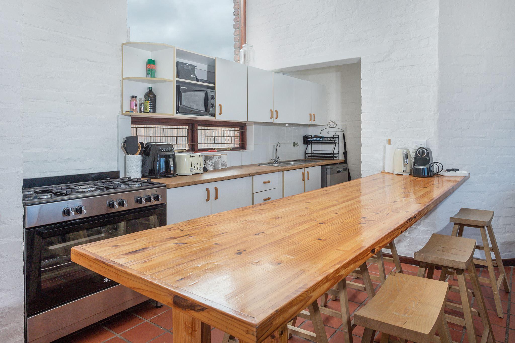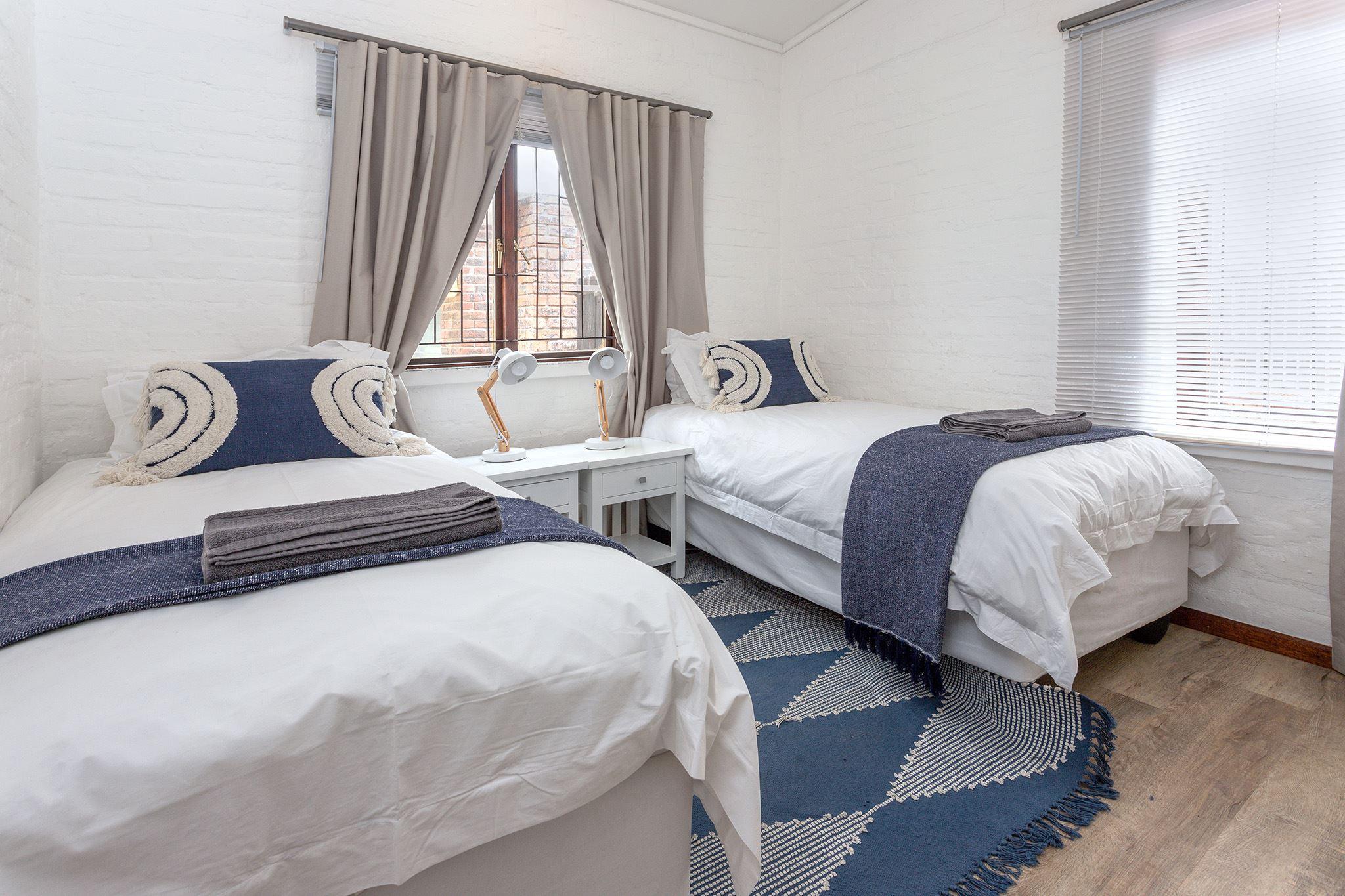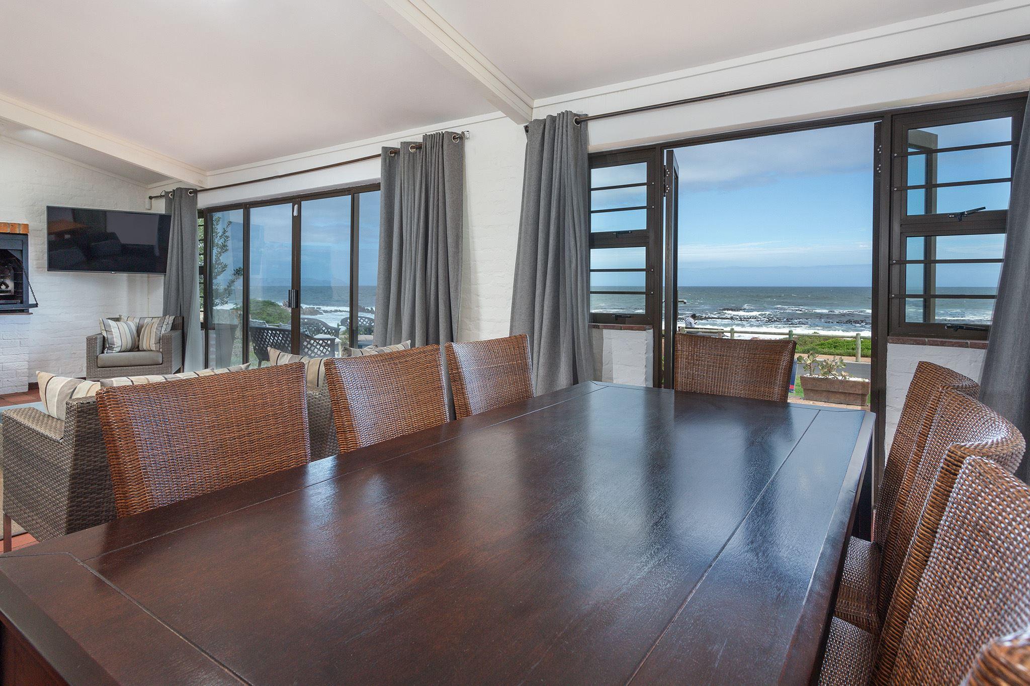 The Atlantic is a front-row four-bedroom, three-bathroom holiday home located in Onrus Island, Hermanus, with breathtaking ocean views. The double-storey house can accommodate up to 8 guests. Our guests love the proximity to the ever-popular Onrus Main Beach which is just around the corner from the house. You are welcomed by an open-plan living, kitchen and dining area. The kitchen is fully equipped for self-catering and contains a stove, oven, fridge-freezer, microwave, and cutlery and crockery. For your convenience, a dishwasher is located within the kitchen, while the washer and
