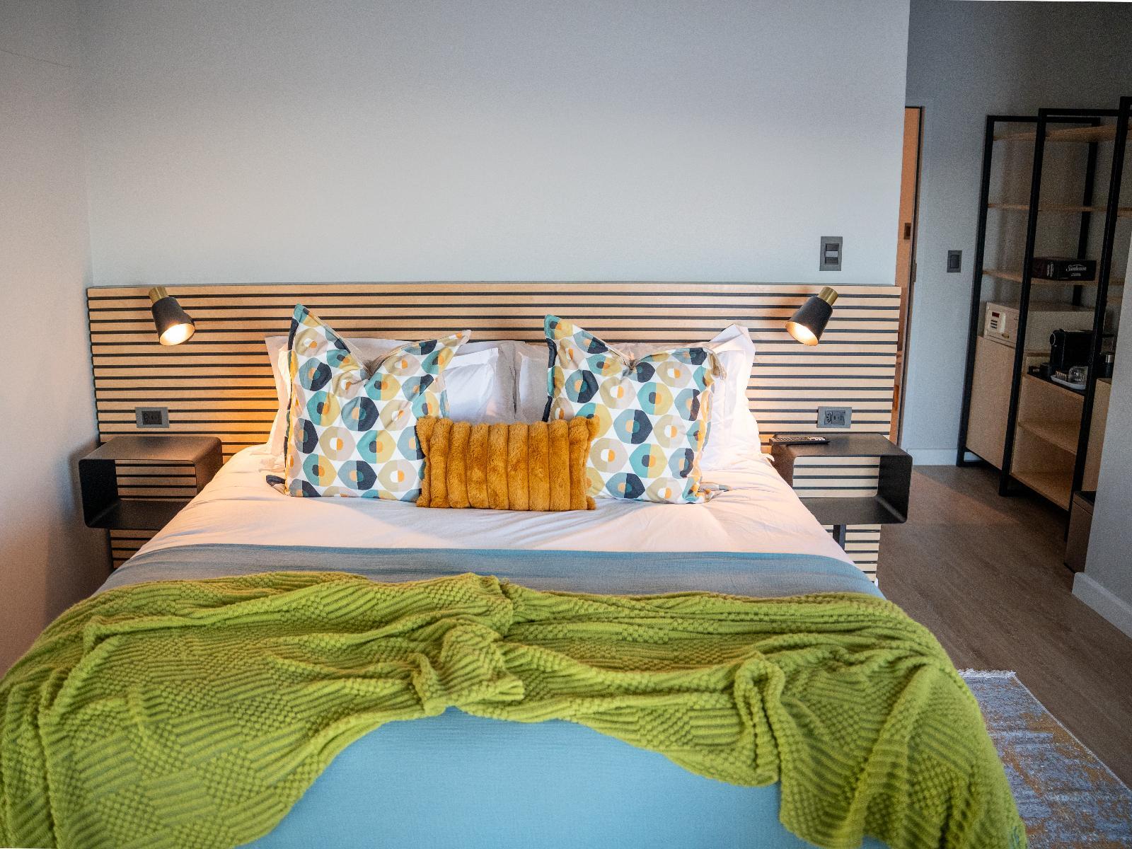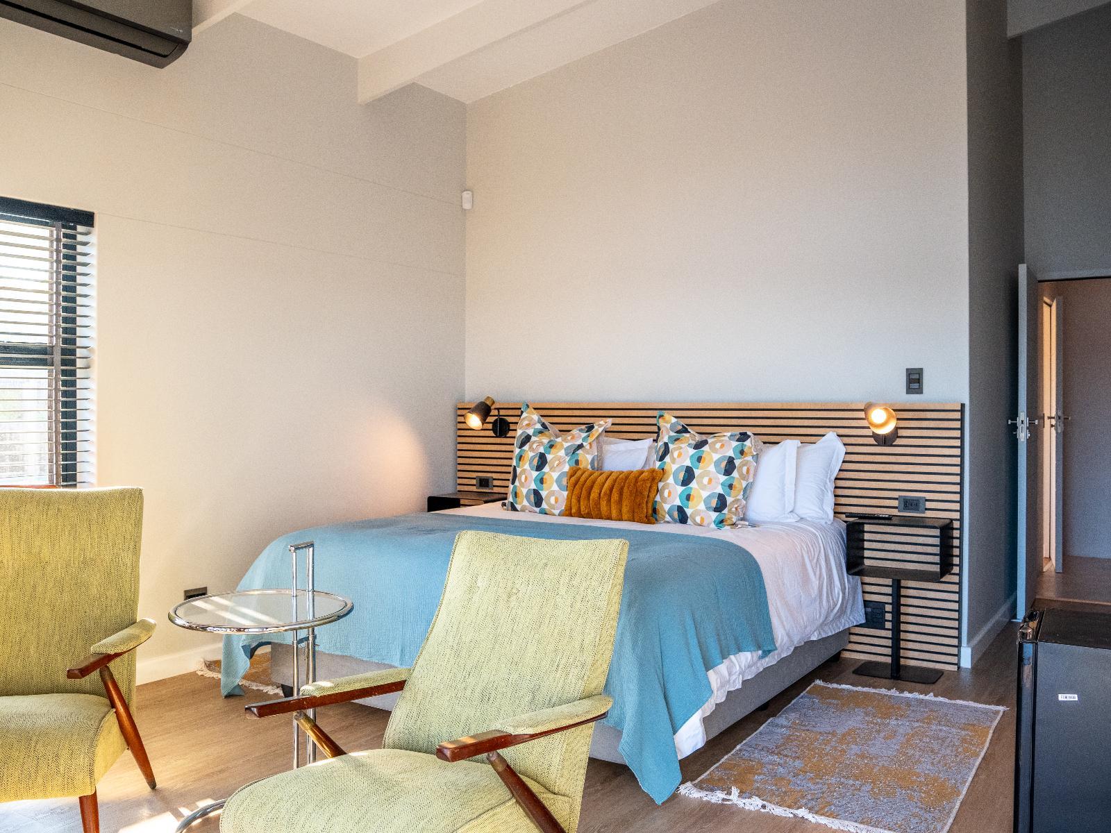 Step into a space where sustainable design meets soul-soothing style. Each room is uniquely curated with retro charm, sleek finishes, and thoughtful colour palettes, anchored by king-size beds and modern comforts. Six of the bedrooms boast panoramic views of the Knysna Estuary, the iconic Knysna Heads and distant sea views of the Indian Ocean, whilst the other room is pool-facing. The bedrooms feature high ceilings and luxury vinyl flooring. All rooms include 2 yoga mats, a smart TV with Bluetooth, USB and C-type charging points, international adapters, full-length mirrors and block-curtains, as well as double-glazed windows. The bathrooms are fitted with a spa-style shower, sensor light, and magnifying mirrors.