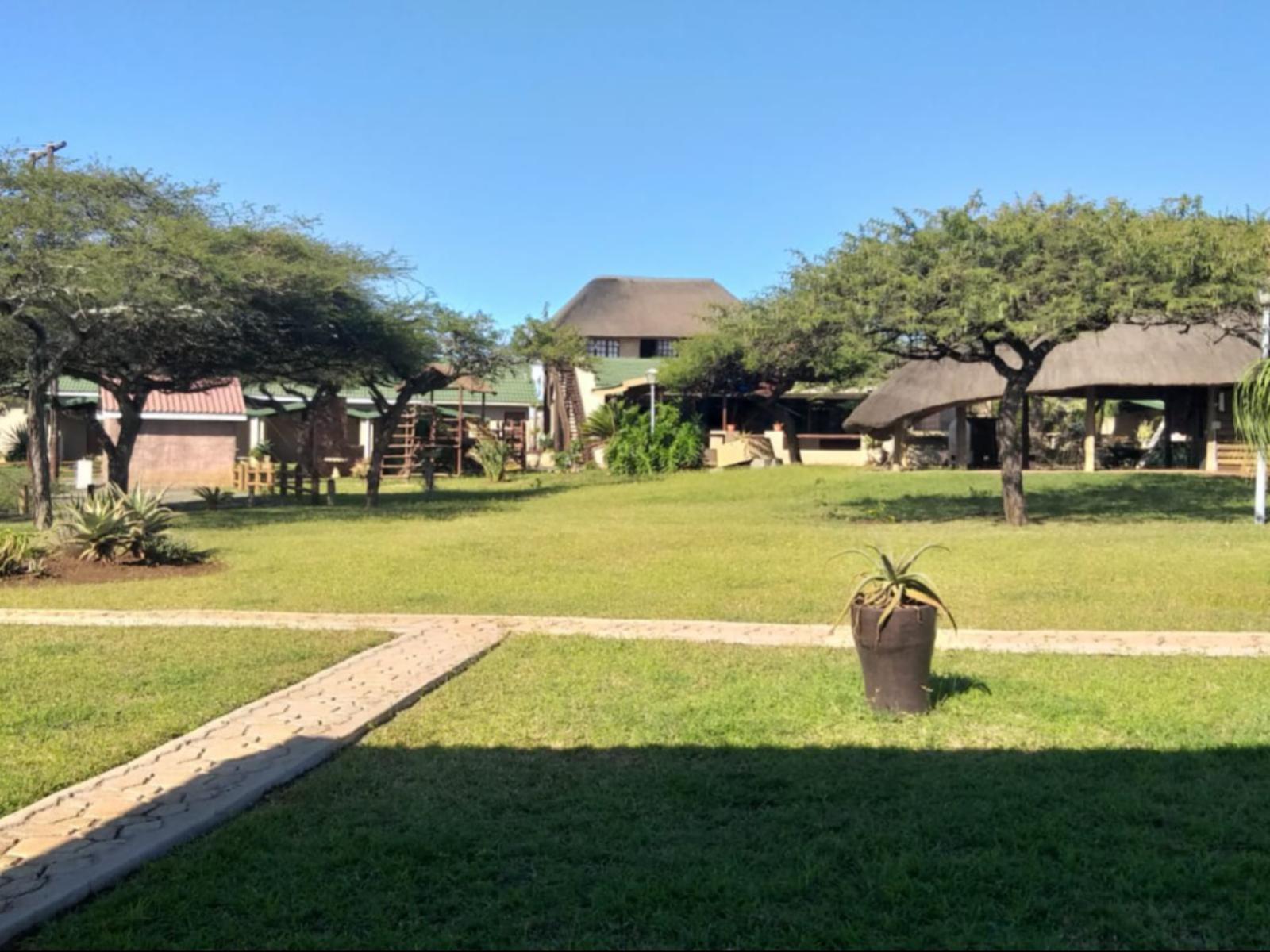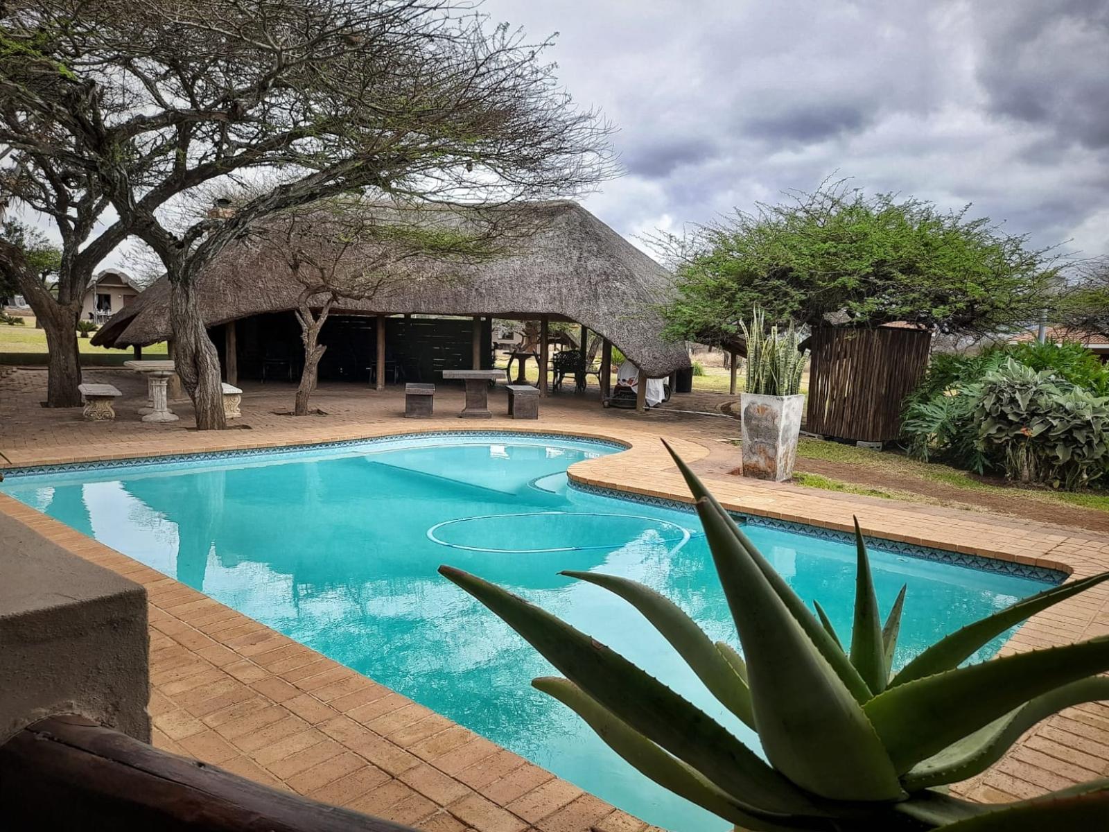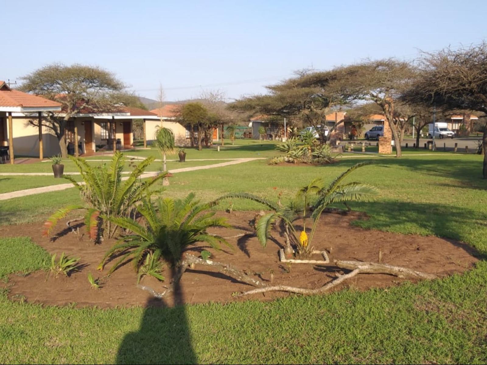 Baobab Inn invites you to the ultimate getaway in the tranquil bushveld of Mkuze. Enjoy sweeping views from your room or the entertainment area, where you can relax and watch wildlife like Nyala and Impala. The lush garden features a swimming pool, a child-friendly jungle gym, and a Lapa for gatherings.The property is conveniently located next to the N2, 22.5 km from Mkuze town in KwaZulu-Natal, offering secure parking. Air-conditioned chalets are equipped with tea and coffee facilities, a small bar fridge, a microwave, and an en-suite bathroom. The chalets are available with eithe