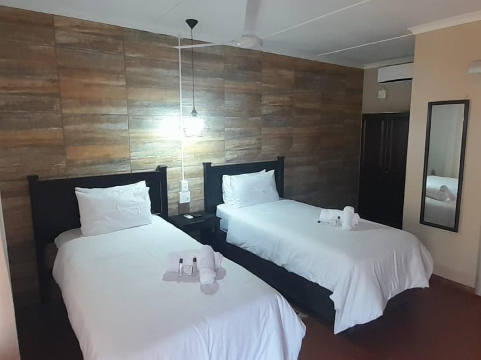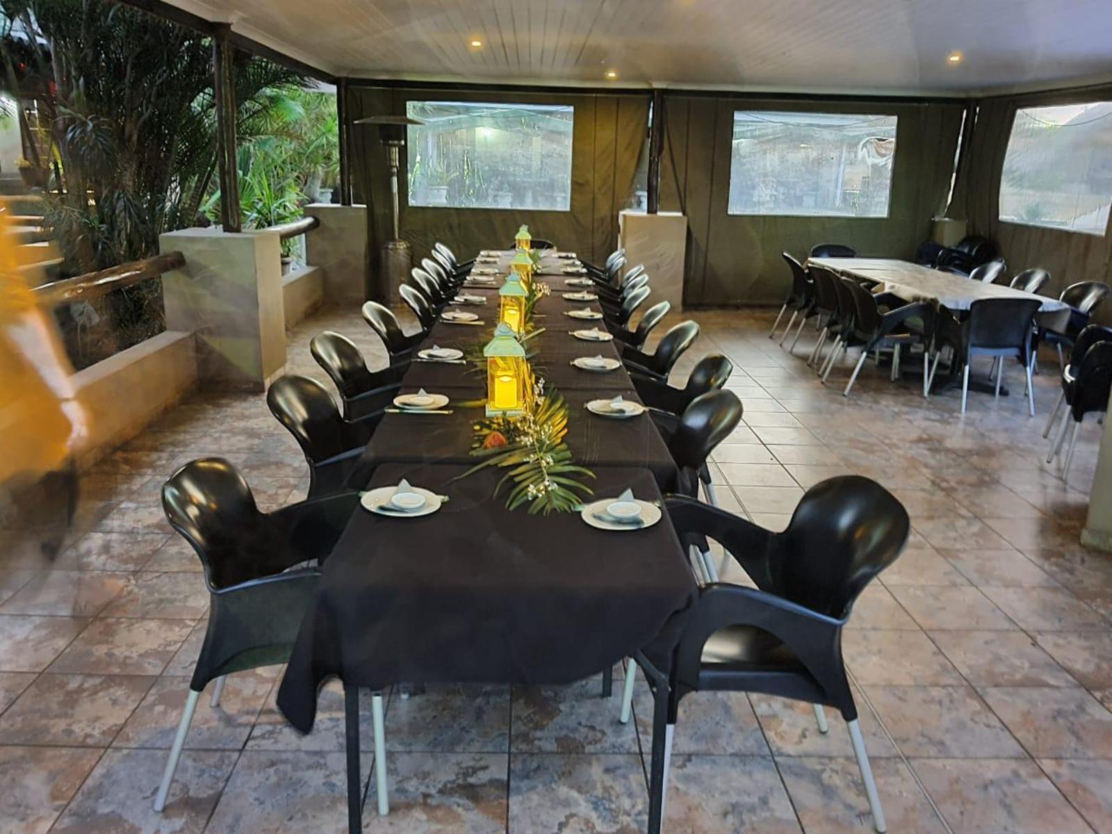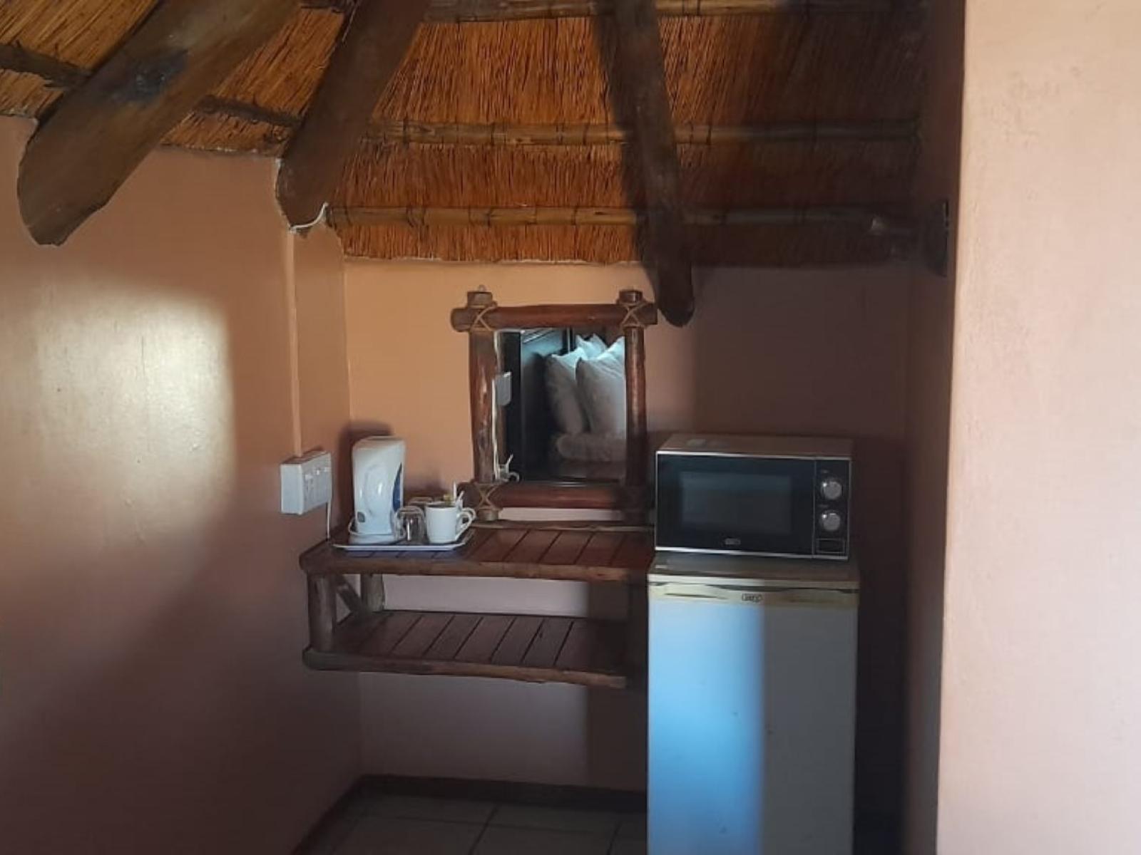 Baobab Inn invites you to the ultimate getaway in the tranquil bushveld of Mkuze. Enjoy sweeping views from your room or the entertainment area, where you can relax and watch wildlife like Nyala and Impala. The lush garden features a swimming pool, a child-friendly jungle gym, and a Lapa for gatherings.The property is conveniently located next to the N2, 22.5 km from Mkuze town in KwaZulu-Natal, offering secure parking. Air-conditioned chalets are equipped with tea and coffee facilities, a small bar fridge, a microwave, and an en-suite bathroom. The chalets are available with eithe