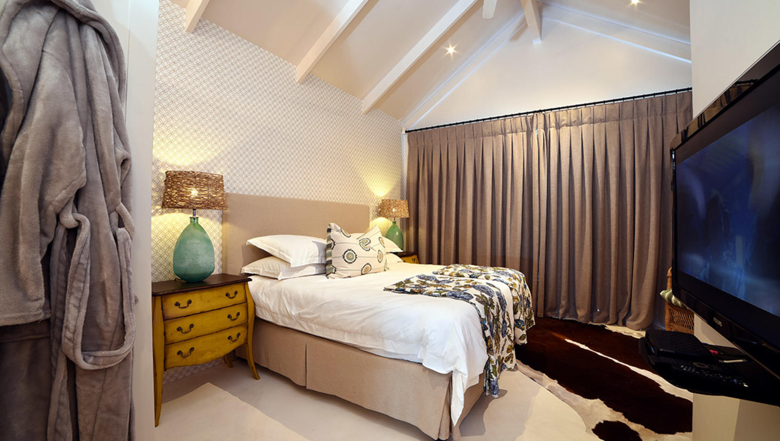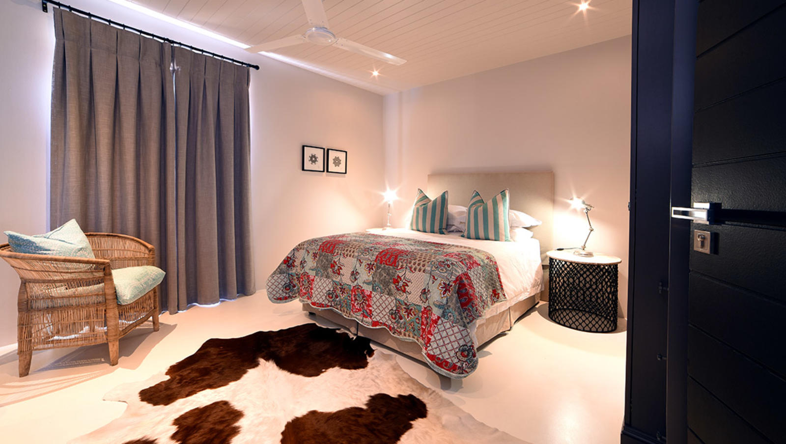 The self-catering house has four bedrooms, stunning interiors, and a an outdoor area with seating and a swimming pool. Guests can also make use of the braai facilities and Wi-Fi Internet access.
