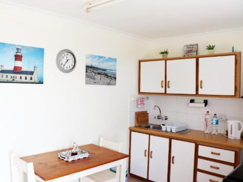 The Goose Nest is situated in the charming seaside town of Struisbaai, a few meters from the stunning coastline.The quaint flat is fully furnished and is located on the ground floor of the owner’s house, consisting of one bedroom, one bathroom and an open-plan living room. The bedroom features a double bed and Premium Package DStv, WIFI also available and living area has a well-equipped kitchenette and seating for four. The abode also offers guests a patio with braai facilities and parking on the premises. The flat is 450m from the main beach and within walking distance of restaurants, shops