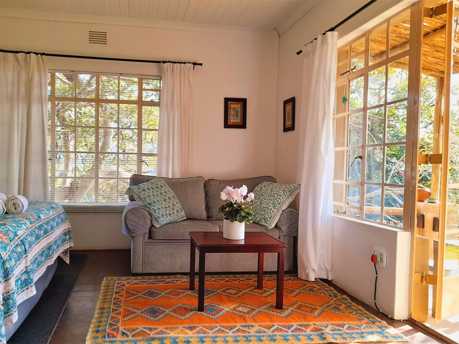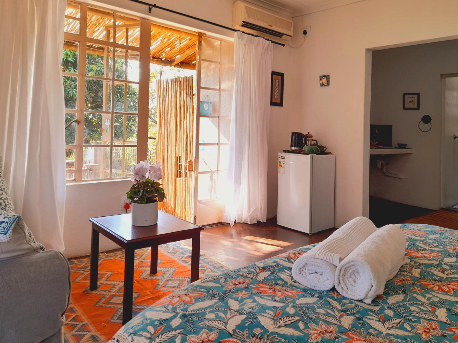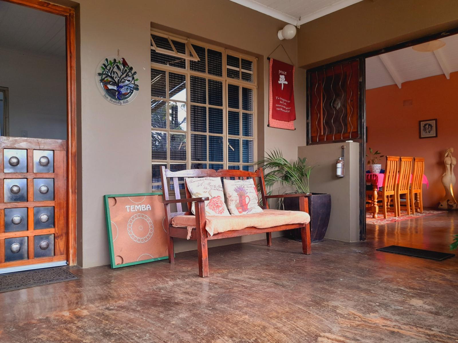 The Healing Hill Guesthouse offers two queen rooms and one double room. The queen rooms are separate buildings and have self-catering facilities, a dining table, a private outside sitting area, a couch, a shower, basin, and toilet in one.The self-catering kitchens are equipped with crockery and cutlery, and small ovens and pots and pans but there are no microwaves in the rooms. Should you not feel like cooking or going out, The Cauldron Cafe will be happy to serve you from our small but nutritious vegan menu. You have your own private braai/BBQ area should you wish to cook meat Bus