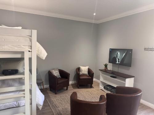 The Homestead Cottage is situated in the tranquil surroundings of Bloemfontein, close to Shopping Centres like Mimosa Mall, Preller Square, Waterfront. Medi-Clinic Hospital is also nearby. We are centrally situated between all major schools - Grey, Eunice, Oranje, Sentraal, St Andrews and St Michaels.The luxurious self-catering two bedroom unit accommodates a family of four. Facilities such as DStv, Fully equipped kitchen with laundry facilities, living room, braai and safe parking.