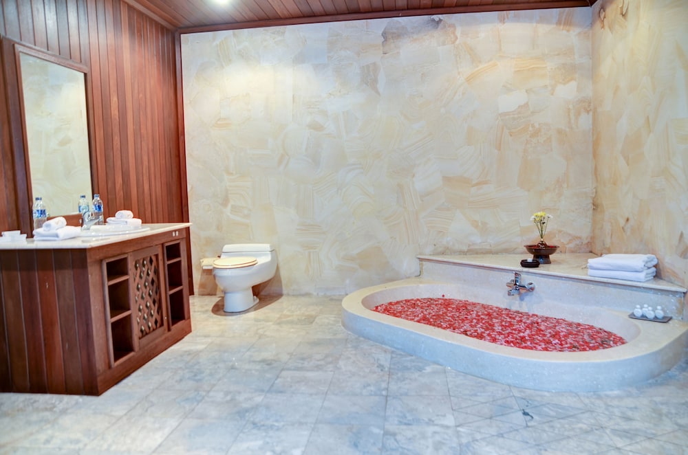 Located in Tegallalang, The Kampung Resort Ubud is in a rural location and close to Tegallalang Handicraft Center and Gunung Kawi Temple. This hotel is within the vicinity of Elephant Safari Park and Tirta Empul Temple.Rooms Make yourself at home in one of the 9 air-conditioned rooms featuring refrigerators and LED televisions. Rooms have private furnished balconies. Complimentary wireless Internet access keeps you connected, and satellite programming is available for your entertainment. Private bathrooms with separate bathtubs and showers feature deep soaking bathtubs and complimentary toiletries. Take advantage of recreation opportunities such as an outdoor pool or take in the view from a rooftop terrace and a terrace. Additional amenities include complimentary wireless Internet access, concierge services, and complimentary babysitting/childcare. Getting to nearby attractions is a breeze with the complimentary area shuttle.Dining Satisfy your appetite at the hotel's restaurant, which serves breakfast, lunch, and dinner. Dining is also available at a coffee shop/café, and room service (during limited hours) is provided. Quench your thirst with your favorite drink at a bar/lounge.Business, Other Amenities Featured amenities include a business center, express check-in, and dry cleaning/laundry services. A roundtrip airport shuttle is provided for a surcharge (available on request), and free valet parking is available onsite.