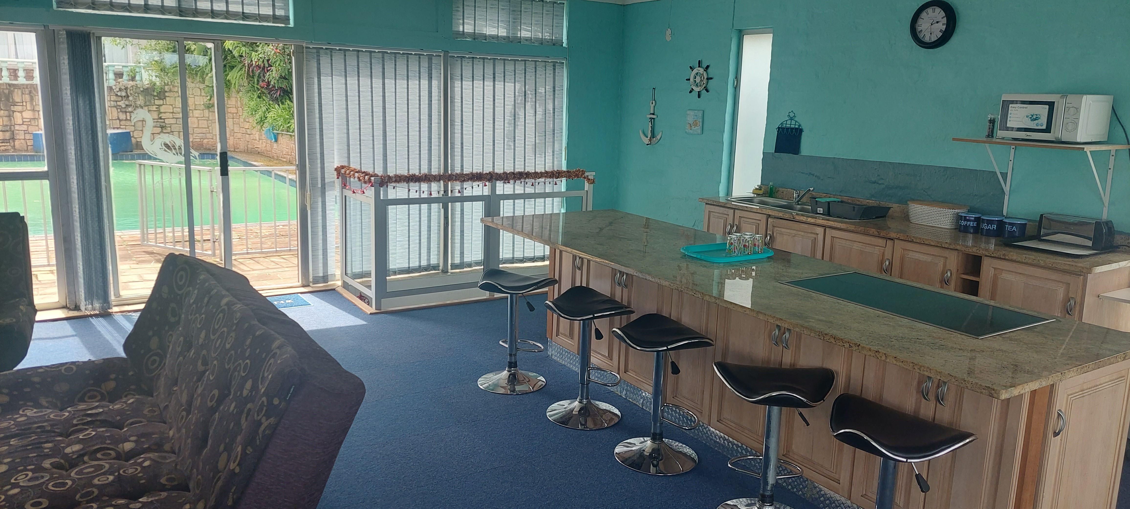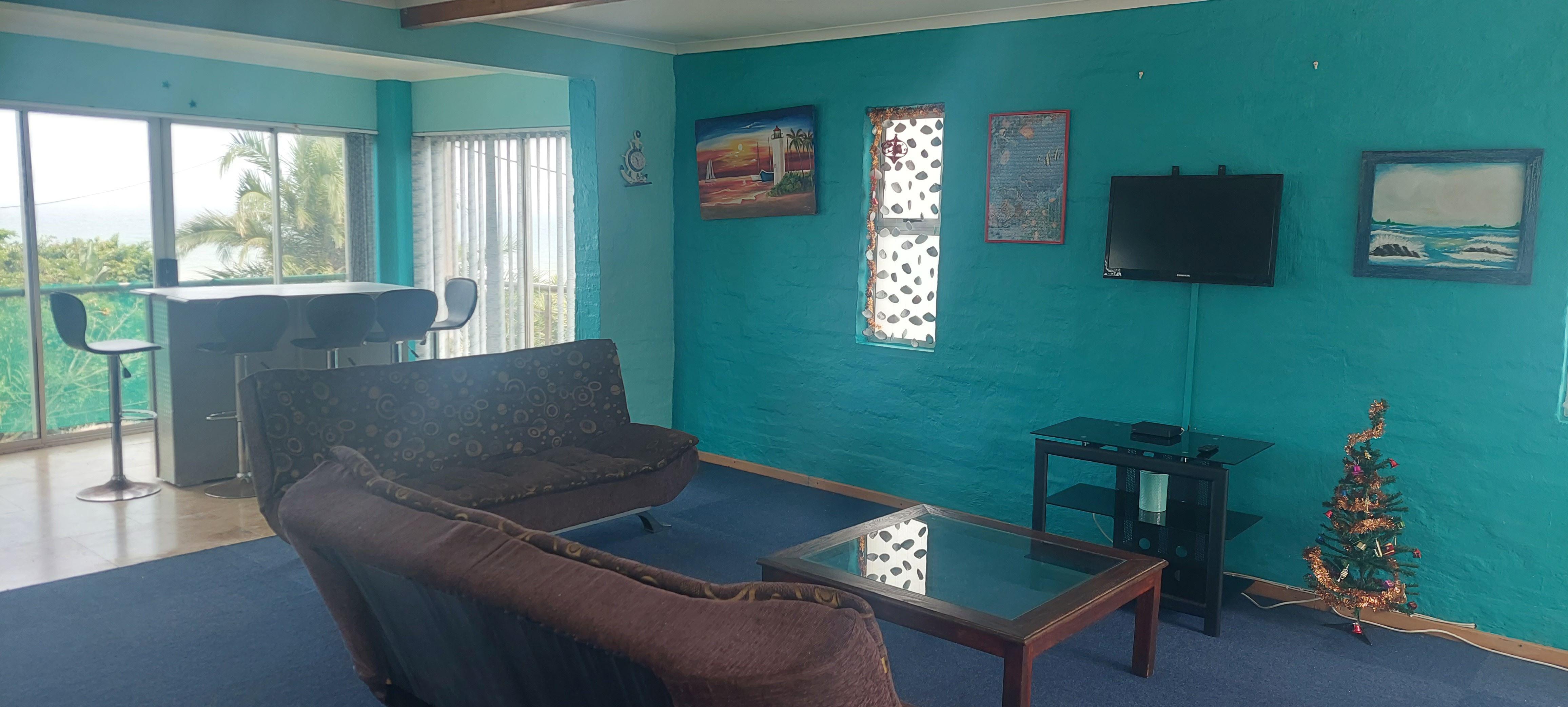 The Kings Ocean view is a furnished self-catering house located in Winklespruit, approximately 2.4 km from the main beach, which has lifeguards and a saltwater pool. The Galleria Mall is just a 10-minute drive away. The house is approximately 23 km from Durban. A Pick ‘n Pay Shopping center is within walking distance from the establishment.The house can accommodate up to 8 guests and comprises 2 bedrooms, 2 bathrooms, and an open-plan kitchen, dining and living area. The main bedroom is contains a double-size bed, and a shower en-suite with a toilet and washbasin. The second bedroo