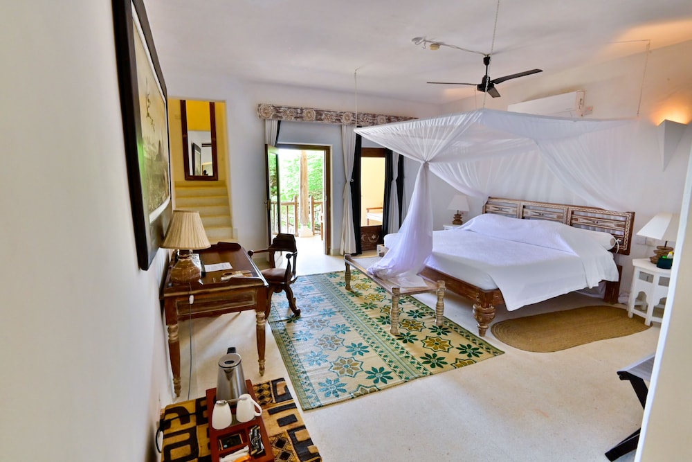 The Majlis Resort is located in Lamu with views of the Ras Kitau Bay on Manda Island. Featuring exteriors and interiors reflecting a fusion of Italian and Swahili-style design the resort offers free Wi-Fi.The elegant rooms come with mosquito nets draped over the bed white interiors and traditional designed furnishings. It includes a minibar air conditioning and safe. Some rooms have a sea view and a garden view.The Majlis Resort restaurant offers vegetarian fresh seafood and wood-fired pizzas and serves international Italian and Swahili dishes.An array of activities can be enjoyed on site or in the surroundings including cycling windsurfing and canoeing. Lamu Museum is 1 km away.