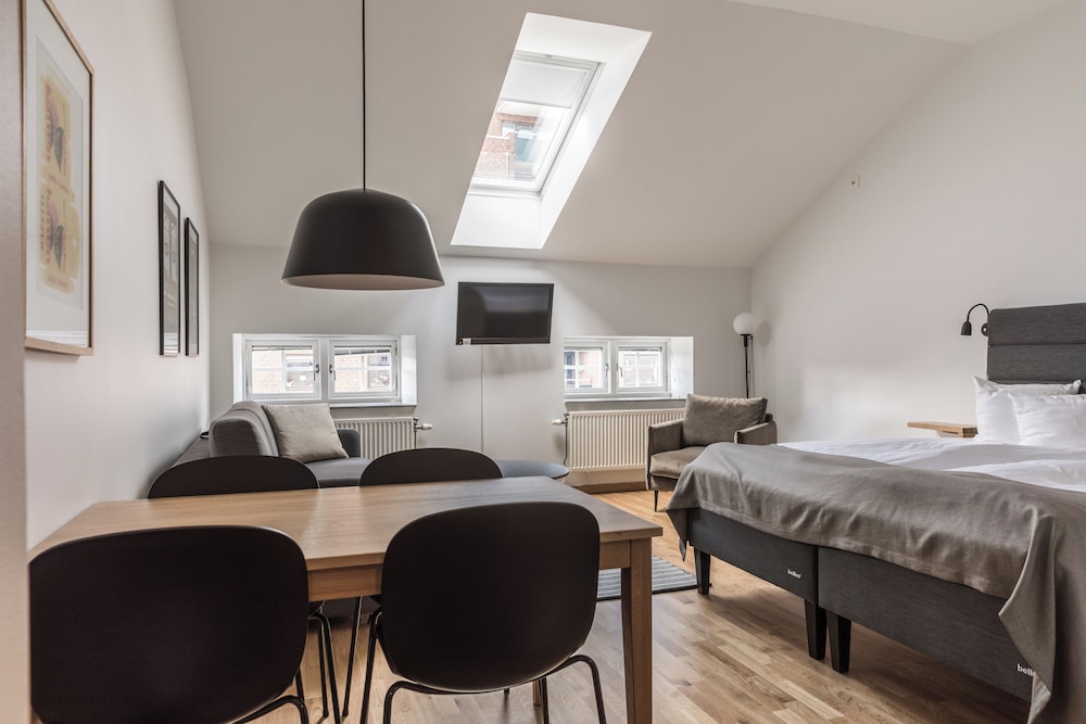 This eco-friendly hotel is within 5 minutes’ walk of Triangeln Station and the vibrant Möllevången district. It offers modern stylish apartments with free internet gym and sauna access.The More Hotel is located in an old chocolate factory dating back to the late 1800s. Each apartment includes a kitchen seating area tiled bathroom and cable TV.Breakfast is served daily at The More Hotel Malmö. During warmer months guests can eat in the inner courtyard.Guests can utilise hotel services such as laundry and dry cleaning. Bicycles are available for rent at reception.Regional buses depart from Bergsgatan right next to The More Hotel. Malmö Central Station is about 20 minutes’ walk away.