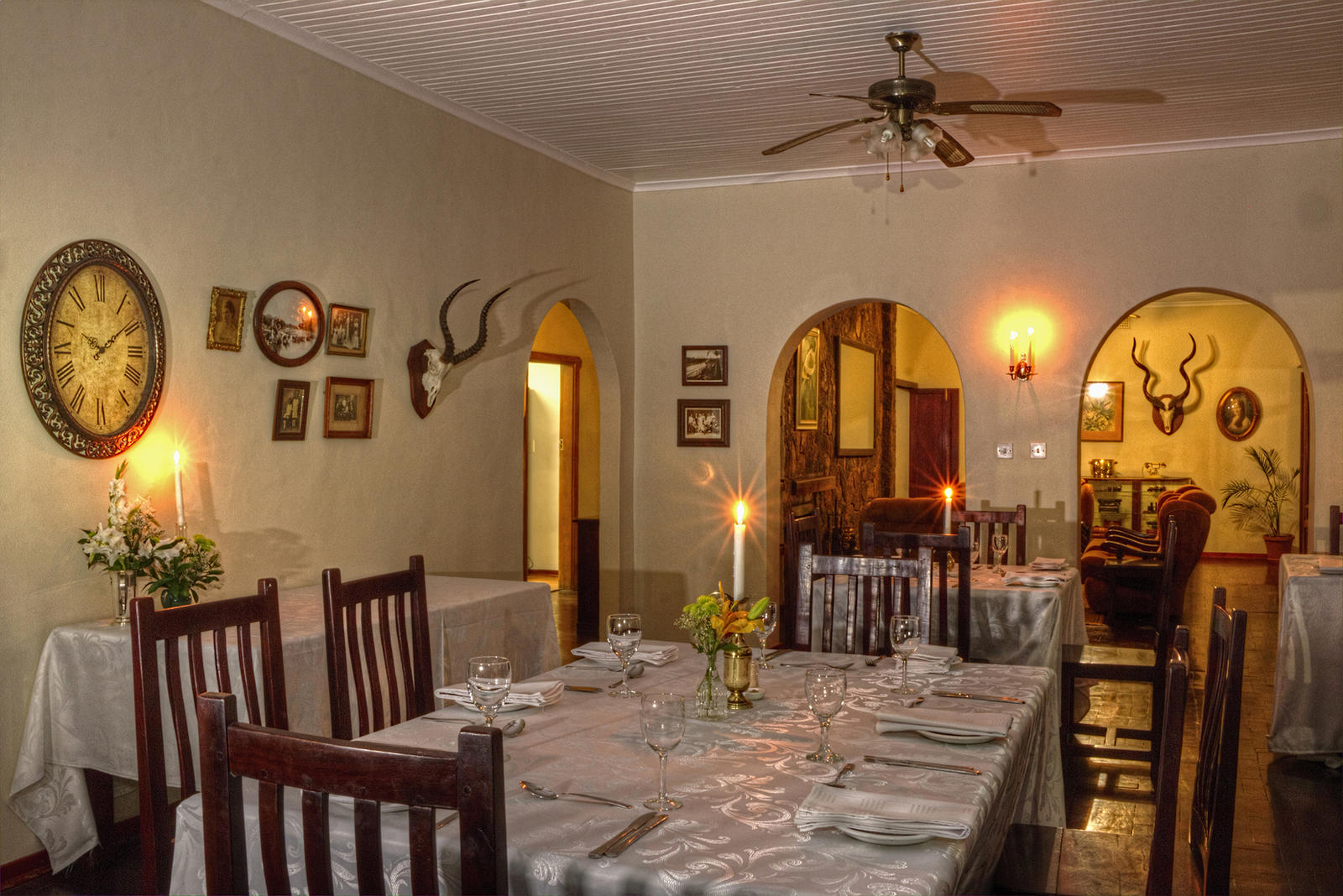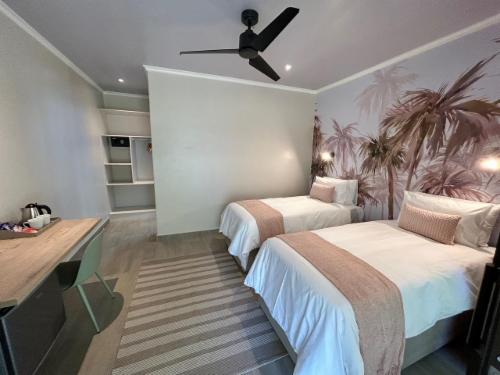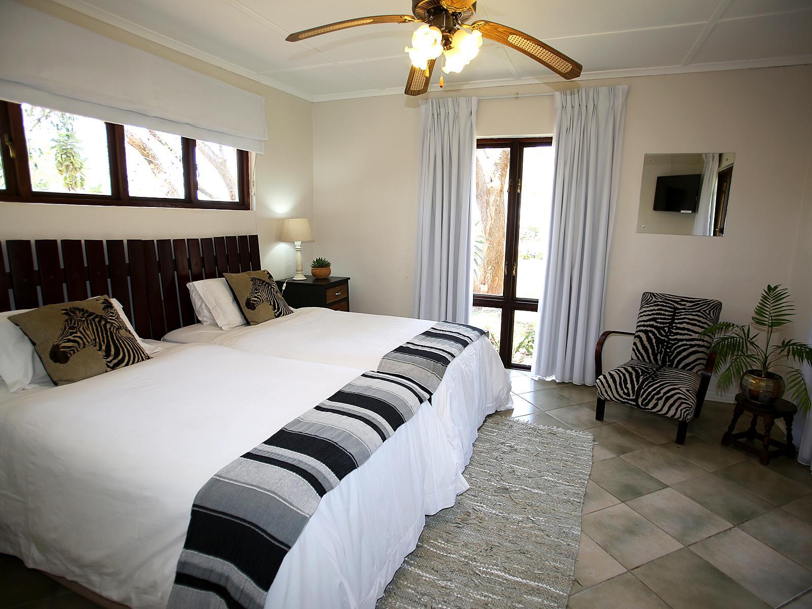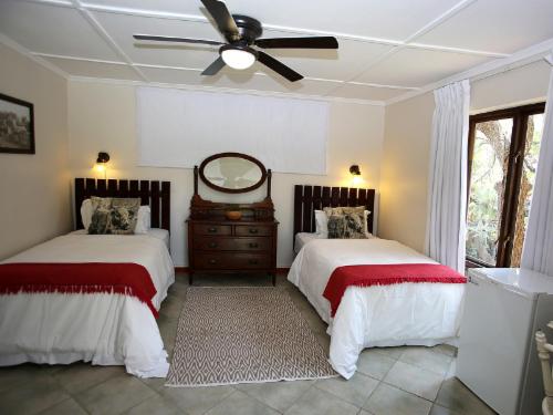 We offer five comfortable rooms, all en-suite. All rooms have been redecorated with a clean colonial feel. Each room has two twin beds with crisp white percale linen, tea and coffee facilities, an overhead fan, Wi-Fi and DStv. All rooms open out onto our lush tranquil gardens, you will not find a quieter or more peaceful setting still within city limits. Each room is fitted with a small safe to keep your valuables in. We accept small pets by prior arrangement only. There are steps in the lodge but rooms are wheelchair-accessible and help is provided where necessary.