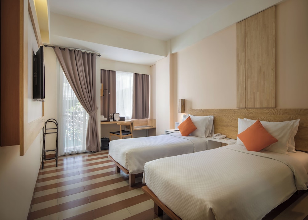 Facilities and services include wireless Internet access, 24 hour reception, restaurant, bar, swimming pool, fitness center, elevator, room service (extra charge), laundry service (extra charge), meeting room and spa treatments (extra charge).Rooms feature wireless Internet access, air conditioning, T.V, telephone, safe, fridge, hairdryer and bathroom.Superior Rooms also feature coffee maker.Please note that some of the above facilities may be closed due to weather / seasonal conditions.Address: Jalan Raya Legian No. 117, Kuta 80361, Legian, Indonesia.