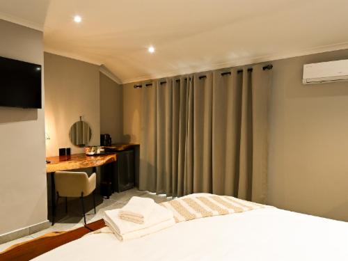 The Roaming Goat Guesthouse is a beautifully restored farmhouse set on a peaceful country estate just 3km outside Louis Trichardt. Once a grand family home, it has been thoughtfully transformed into an elegant, comfortable guesthouse where guests can relax, recharge, and enjoy the best of nature without being far from town.Surrounded by ancient trees, expansive gardens, and roaming wildlife, the atmosphere is calm and unhurried, a perfect blend of space, tranquillity, and modern convenience. With stylish en-suite rooms, a chef-run restaurant, backup solar power, and warm, attentive