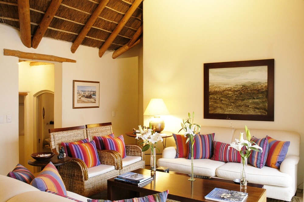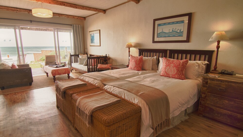 The Sands @ St Francis is located on along the golden shores of St Francis Bay. Here, guests are offered luxury accommodation improved by endless ocean views. The Sands is set within easy reach to game reserves and activities such as, paddle-skiing, horse riding, golf and deep-sea fishing are easily accessible.Accommodation is offered in beautifully furnished, thatched-roof suites. Each suite is greeted with some part of the Indian Ocean, and is fitted with many comforts and conveniences. The Luxury Rooms have either king-size or twin beds and en-suite bathrooms. Additional feature
