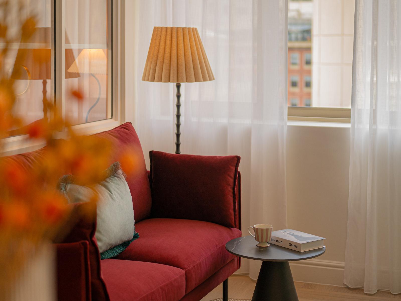 Each room or suite is booked on a bed and breakfast basis, except the Family Suites. The building also boasts a restaurant, elevator access, and secure paid parking.