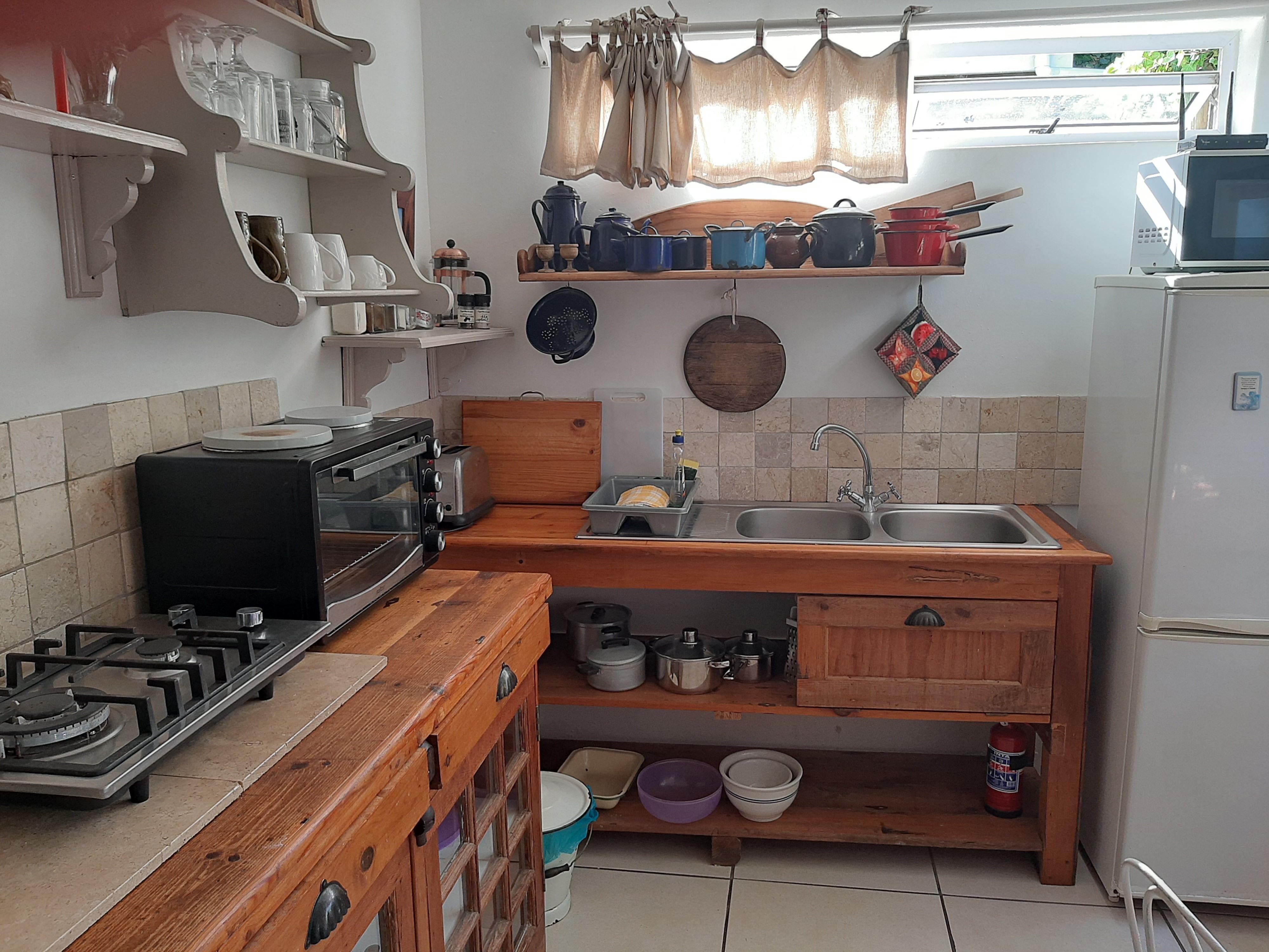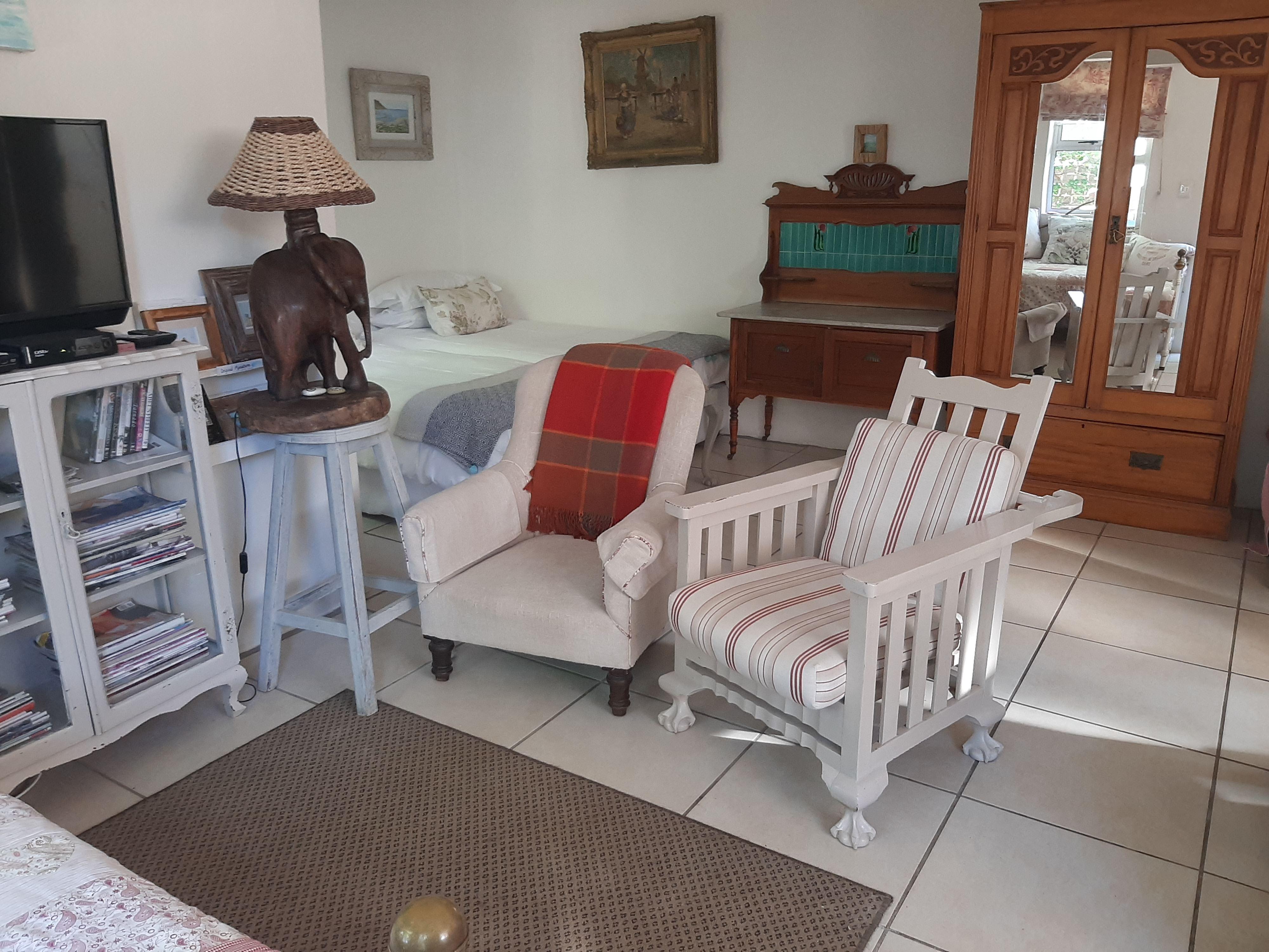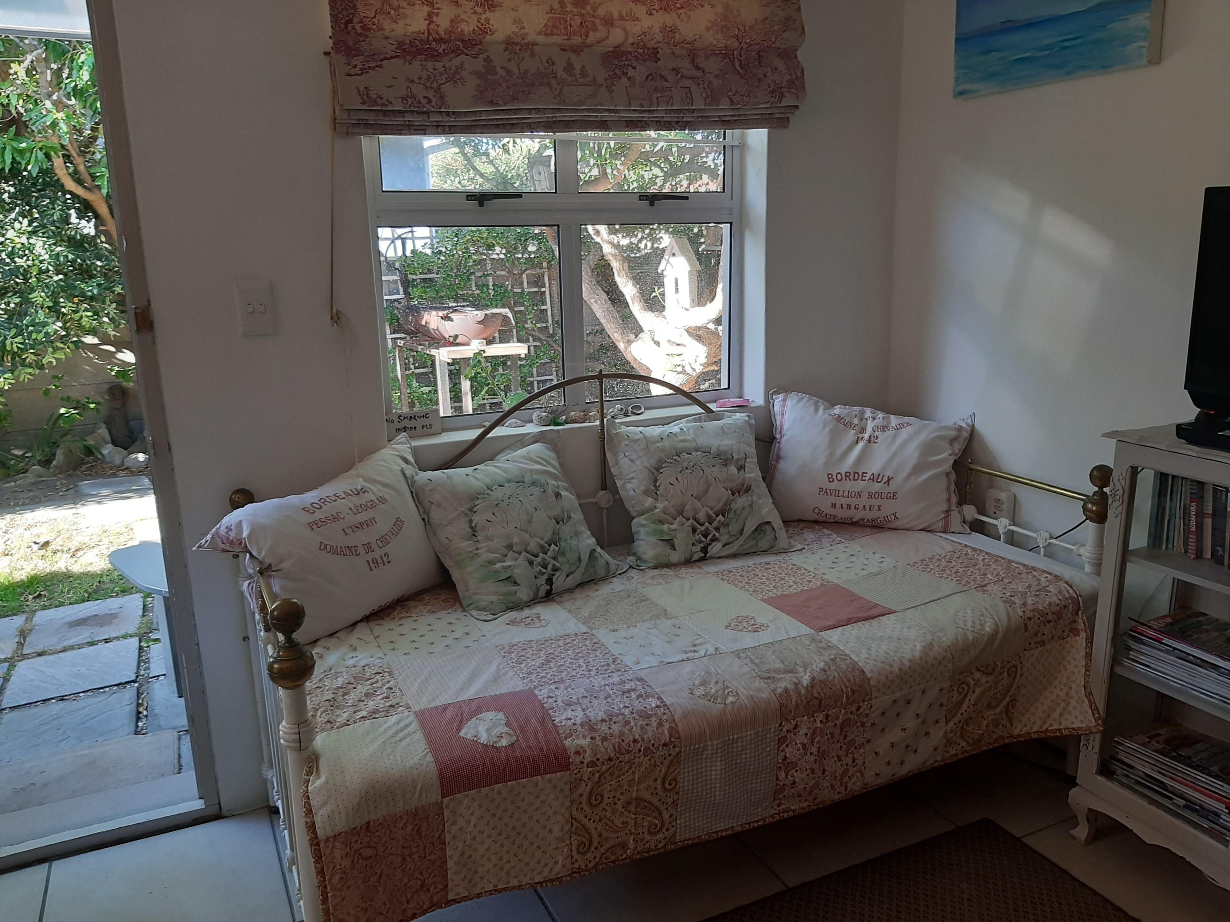 The Gift is a charming, private and comfortable self-catering flatlet set in the garden of a main dwelling in LAgulhas. The flatlet is ideal for a couple and is just one block from the sea and a small tidal pool.The Gift has an open-plan studio layout. The bedroom area contains twin single beds that can be made up together. The en suite features a shower. There is a lounge area with a TV and a DVD player. The quaint kitchen is well equipped for self-catering and includes a fridge-freezer, a microwave, and a two-plate burner.There is an outside dining area with webe