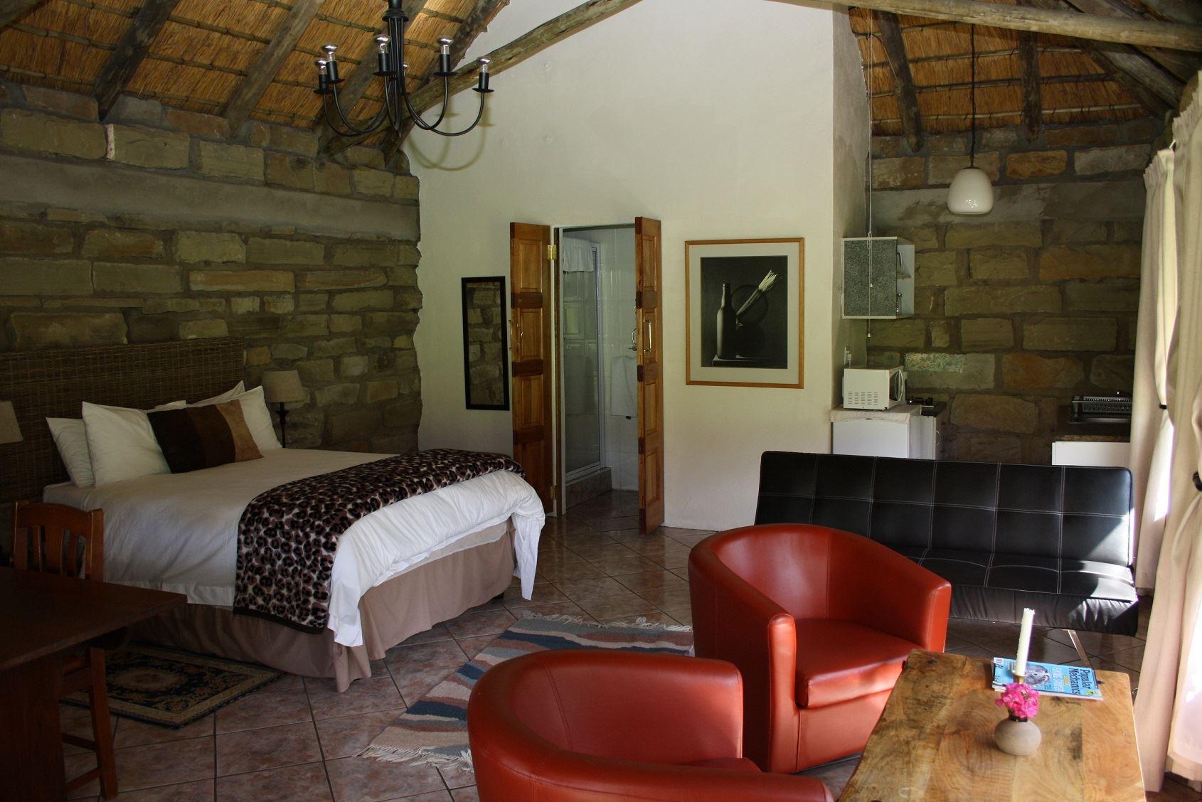 The Guardians are situated on a working farm at the foothills of the Southern Drakensberg, in the busy little town of Elliot, which offers wonderful activities against a backdrop of dramatic mountain scenery. The Guardians is just 5 km out of town.The Guardians offers accommodation in a beautiful setting, in luxurious thatched cottages and family units. Guests have a choice of self-catering or bed and breakfast accommodation, with dinner available by prior arrangement.Activities in the surrounding area include rock art sites, fly-fishing, horse riding, hiking trails,