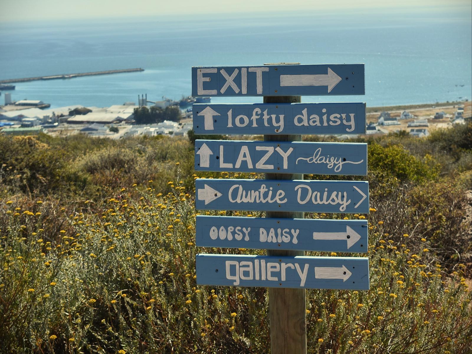 From it's lofty position on top of the hill on the peninsula, The Lazy Daisies affords you the unique opportunity to enjoy both the sunrise and the sunset over the Atlantic Ocean. Cast your gaze east and you have views of the Cederberg mountains, or west over the shimmering white village of Paternoster and the Columbine lighthouse, with endless ocean views in between.With absolute serenity and infinite skies, it is impossible not to find peace and total relaxation in this haven. With absolute serenity and infinite skies, it is impossible not to find peace and total relaxation in this haven. There are 3 self-catering studios, each sleeps one couple, with a king bed. The Lofty Daisy is a cosy loft studio with panoramic views of the ocean and mountains from the deck and the dormer windows. The Oopsy Daisy is a spacious loft studio which also enjoys sweeping views of the sea and the Cederberg range, from the deck and the dormer windows. The Lazy Daisy is the luxury "honeymoon suite" where indescribable sunrises over the ocean can be viewed from the pillow! The Lazy Daisy's famous wet-room, with a rain shower, also offers breathtaking views across the bay.Approximately 150 km from Cape Town, The Lazy Daisies is perfectly situated to offer a base from which to explore the delights of the West Coast and the Swartland. Easy day trips include Langebaan, Paternoster, Darling and Riebeek Kasteel, offering kite-surfing, fine dining, wine, olive and beer tasting or a game safari.