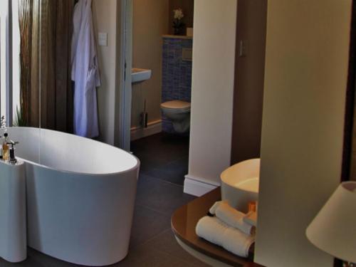 This beautiful boutique hotel style guest house provides luxury five star accommodation in Stellenbosch where you have the opportunity to be pampered and recuperate in a picturesque rural atmosphere amid the vineyards and olives of the Cape Winelands. This exquisite Stellenbosch accommodation provides you with a truly authentic winelands experience and its mountain views, manicured gardens and pastoral setting makes make staying in this exclusive Stellenbosch luxury country house an unparalleled experience.