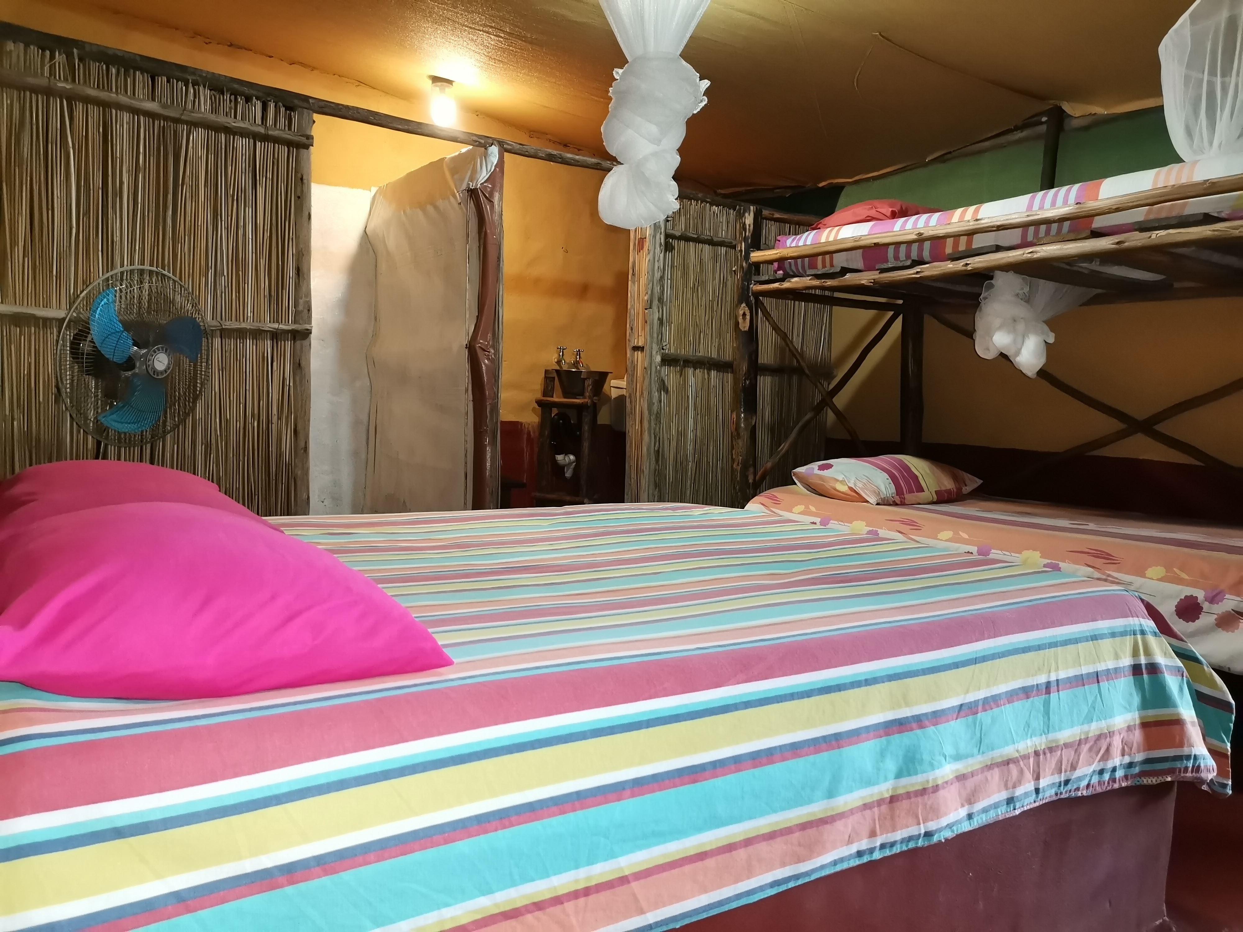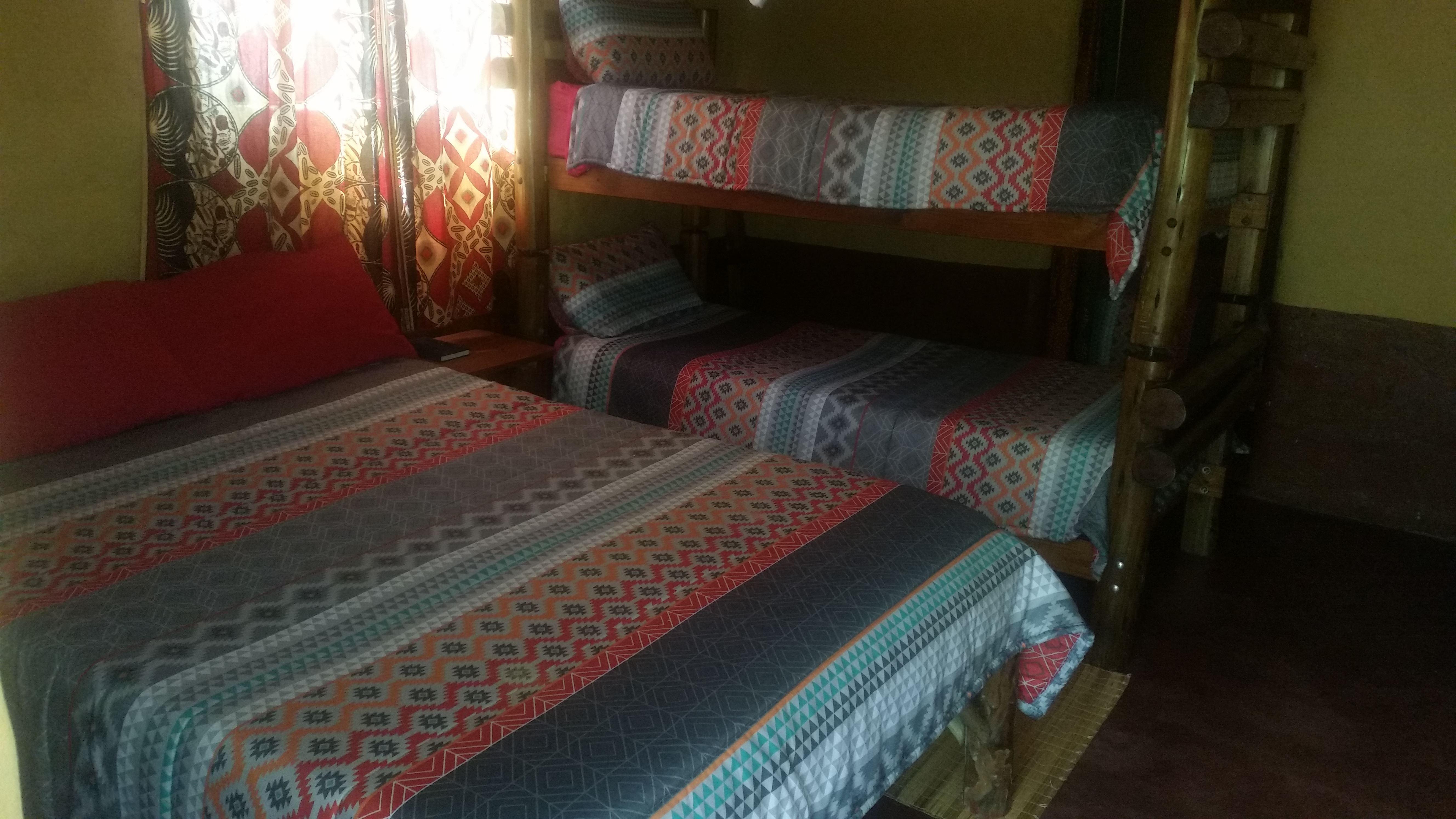 Thobeka Lodge is a very rustic bush Lodge located in Kosi Bay, situated close to beautiful beaches, game parks and lakes. Thobeka Lodge is located 6 km out of town, 14 km from the Mozambique border, 22 km from Ezemvelo main gate (Kosi Bay mouth - the ocean), and 8 km from the lakes and the office where permits are obtained for entering Ezemvelo Park. We advise guests to apply for a Rhino card on the kznwildlife website, as it is much cheaper than the daily entry fees to Ezemvelo Parks.Thobeka lodge offers self-catering accommodation in true African style. There are dor
