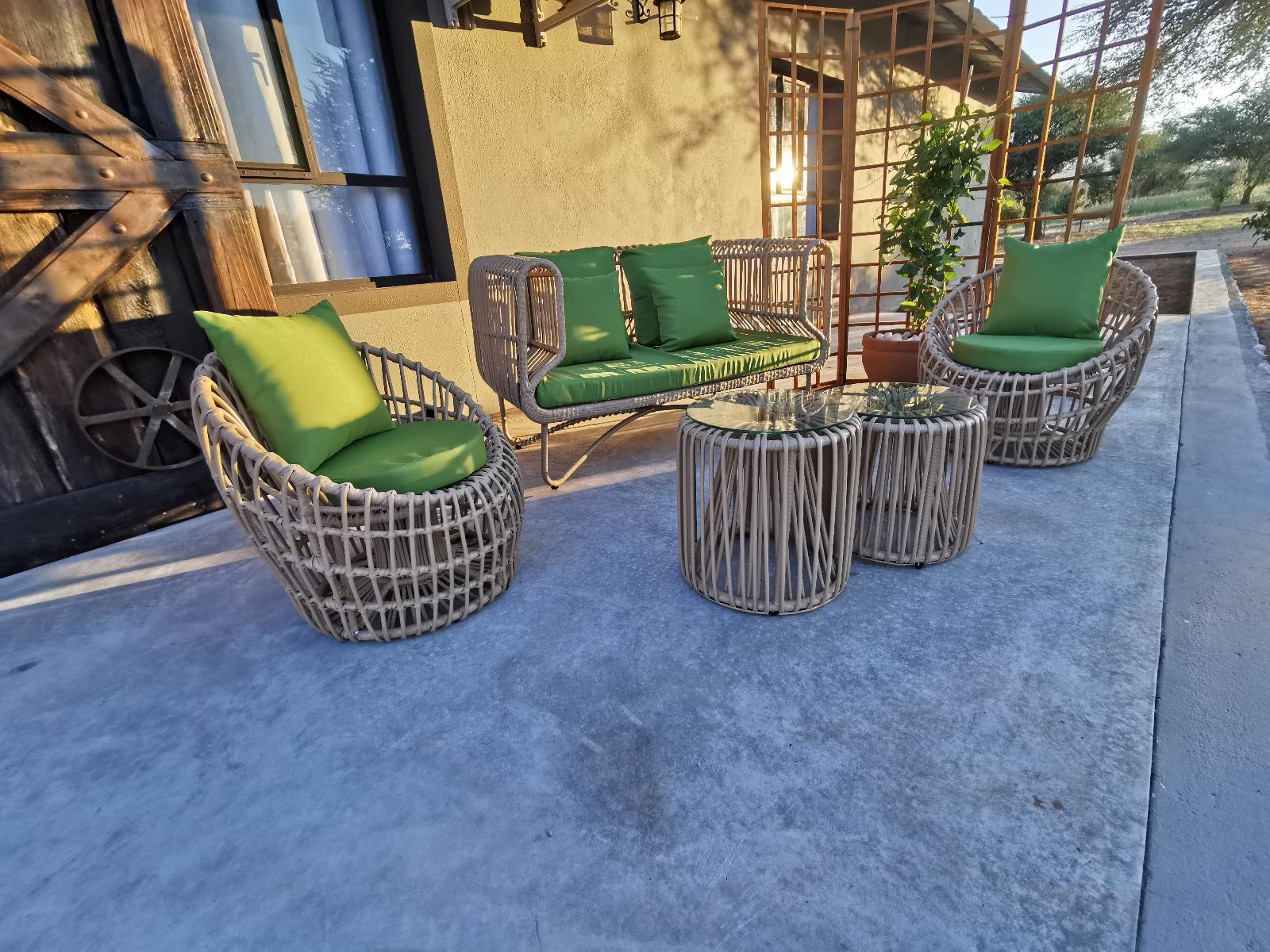 Guests can light up a fire and enjoy a true Namibian bushveld braai, or cool down in the swimming pool while relaxing on the patio and making use of the outdoor entertainment area. A children’s playground and a farm shop are available on the premises.