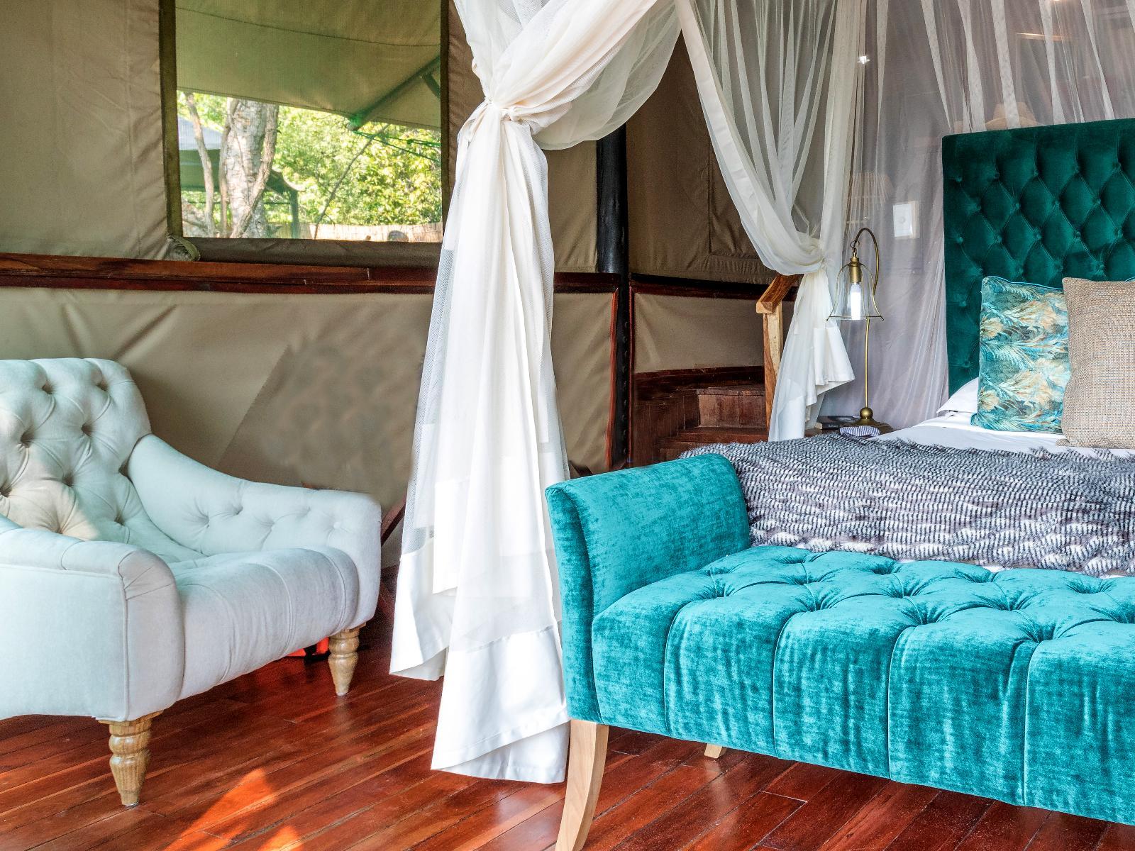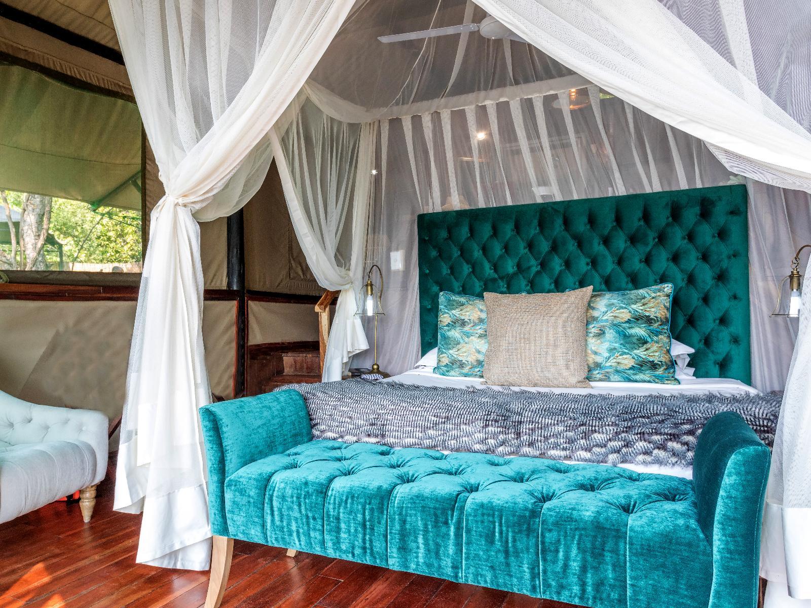 Tintswalo at Siankaba has been developed as a luxurious tented camp, with seven tented suites raised up above the ground in the tree canopy on the edge of the Zambezi River. Private balconies extend over the river with relaxing chairs to view all that unfolds in the Zambezi river.The luxury suites are constructed from teak wood and customised canvas. Each suite has its own balcony extending over the river with relaxing chairs to take in the views of the mighty Zambezi River and the animals roaming on the neighboring Zimbabwe river banks. Each luxury tented suite can accommodate a K