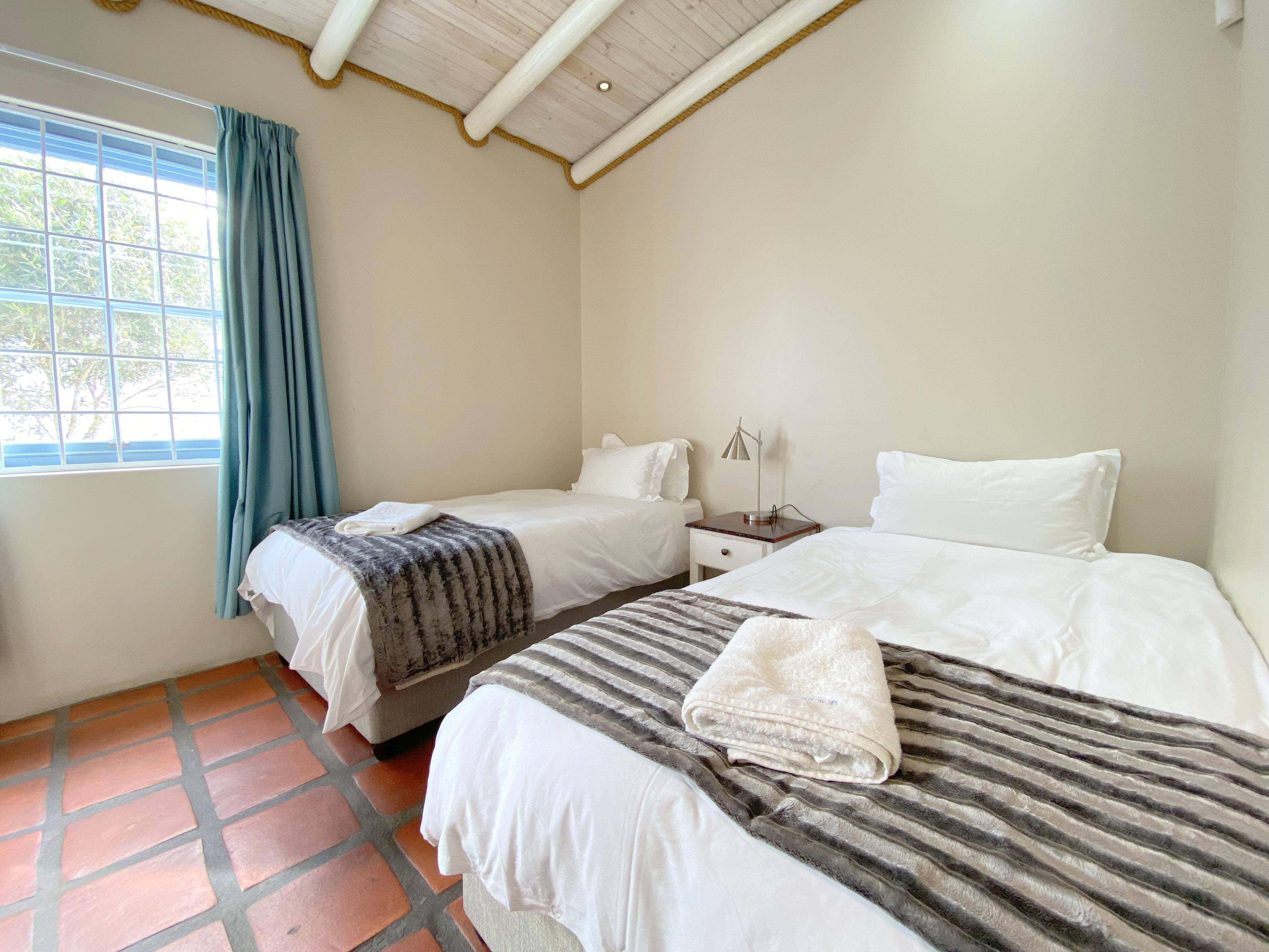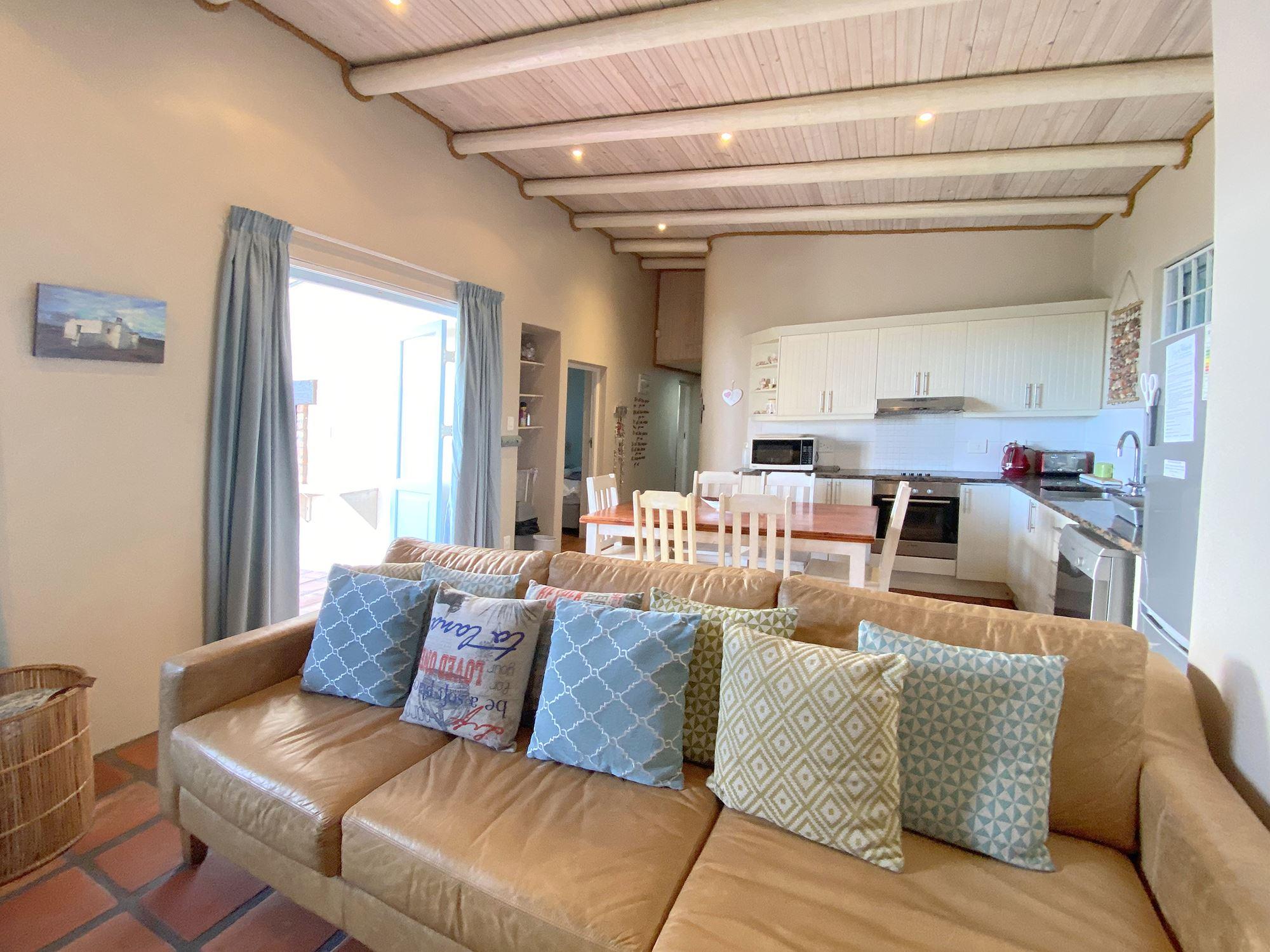 Tjokka is a well-appointed three-bedroom self-catering cottage located 100 m from a popular public beach in Paternoster.The cottage can comfortably accommodate up to six guests and comprises three bedrooms, two bathrooms, an open-plan kitchen, lounge and dining area, and an outside patio with limited views. The first bedroom contains a double bed and a shower en suite. The second bedroom contains a double bed and third bedroom contains twin single beds. These two rooms share a second bathroom with a bath and a shower.The comfortable open-plan living area features a T
