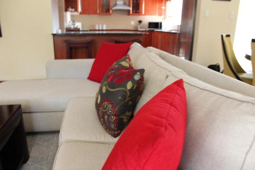 Topaz Cove Luxury Villas are ideally situated in Emerald Estate, in the newly established Greenstone Hill area. Sandton and Midrand are within 15 km of the estate and there is easy access to OR Tambo Airport within a 9 km radius of the villas.We have two villas in the secure, well-established, tranquil Emerald Estate.Each house has a fully equipped kitchen, a dining room and a lounge with DStv. There is air-conditioning and underfloor heating in the living area. Both the Villas have state-of-the-art alarm systems. There is an automated garage door with ample parking