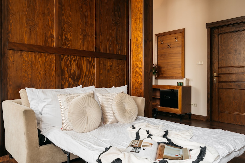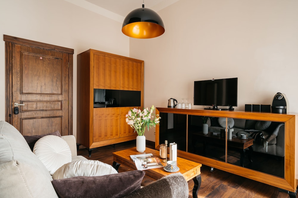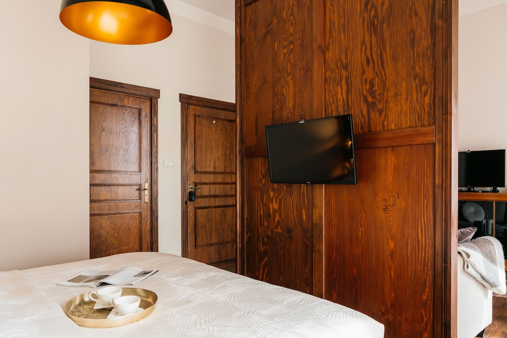 Topolowa Residence is an independent boutique hotel established in march 2014. Our location in the Grzegórzki district offers blissfully quiet relief from the hustle and bustle of Krakow's lively Old Town, being at the same time in close vicinity of the complex of the main train and bus stations and Galeria Krakowska Shopping Centre. The beauty of the Old Town awaits within just a 15 minute walk from the hotel. The trademark of Topolowa Residence is the restored historic building from the 19th century that combines classy elegance with delicate historic details.Our offer consists of 11 exclusively designed apartments placed on the four levels of the building. The apartments are all accessed from a classic wooden staircase elegantly accompanied by marble floors. Every apartment has been designed with greatest attention to detail.The young team of Topolowa Residence is willing to meet the requirements of our Guests by providing assistance with regard to tours and transfers, restaurant recommendations or even nanny service. Our offer is complemented by a charming patio, well equipped bar with friendly service, lounge area with board games, TV and more. Along with high standard accommodation we serve delicious buffet-style breakfast with complimentary warm meals. The building is also equipped with free Wi-Fi access.