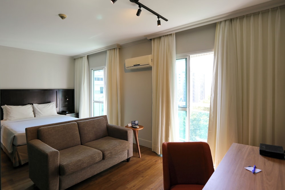 This hotel is situated in the centre of the metropolis of São Paulo in close proximity to Puc University and the banking and commercial district of Barra Funda. Thanks to its convenient location only steps from public transport connections, this hotel is ideally situated for those wishing to explore this Brazilian metropolis.This inviting city hotel offers guests an air-conditioned lobby area with 24-hour service and a safe. The hotel additionally features a pleasing dining room as well as special facilities for meetings and seminars.The tasteful rooms each come with an en suite bathroom with a hairdryer, a direct dial telephone, satellite/ cable TV, an Internet connection and ironing facilities.The hotel offers guests the opportunity to use the in house gym with a sauna area and a small swimming pool.Breakfast is served every morning.