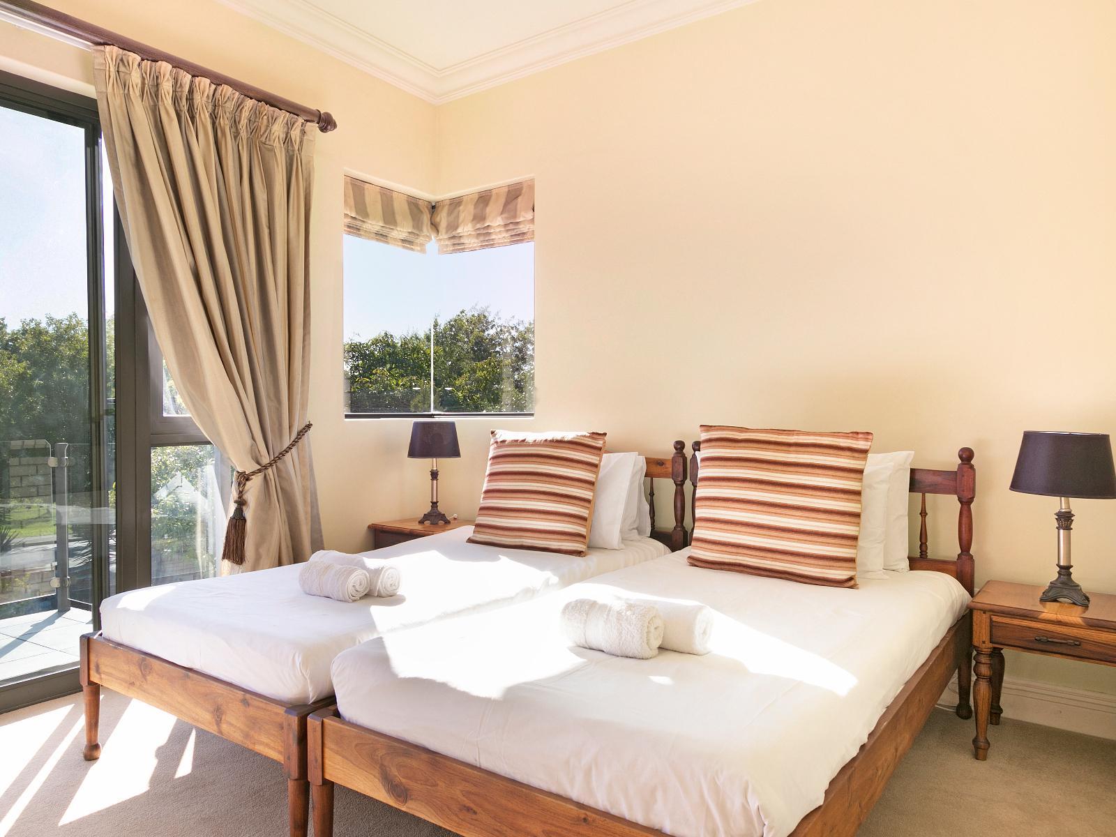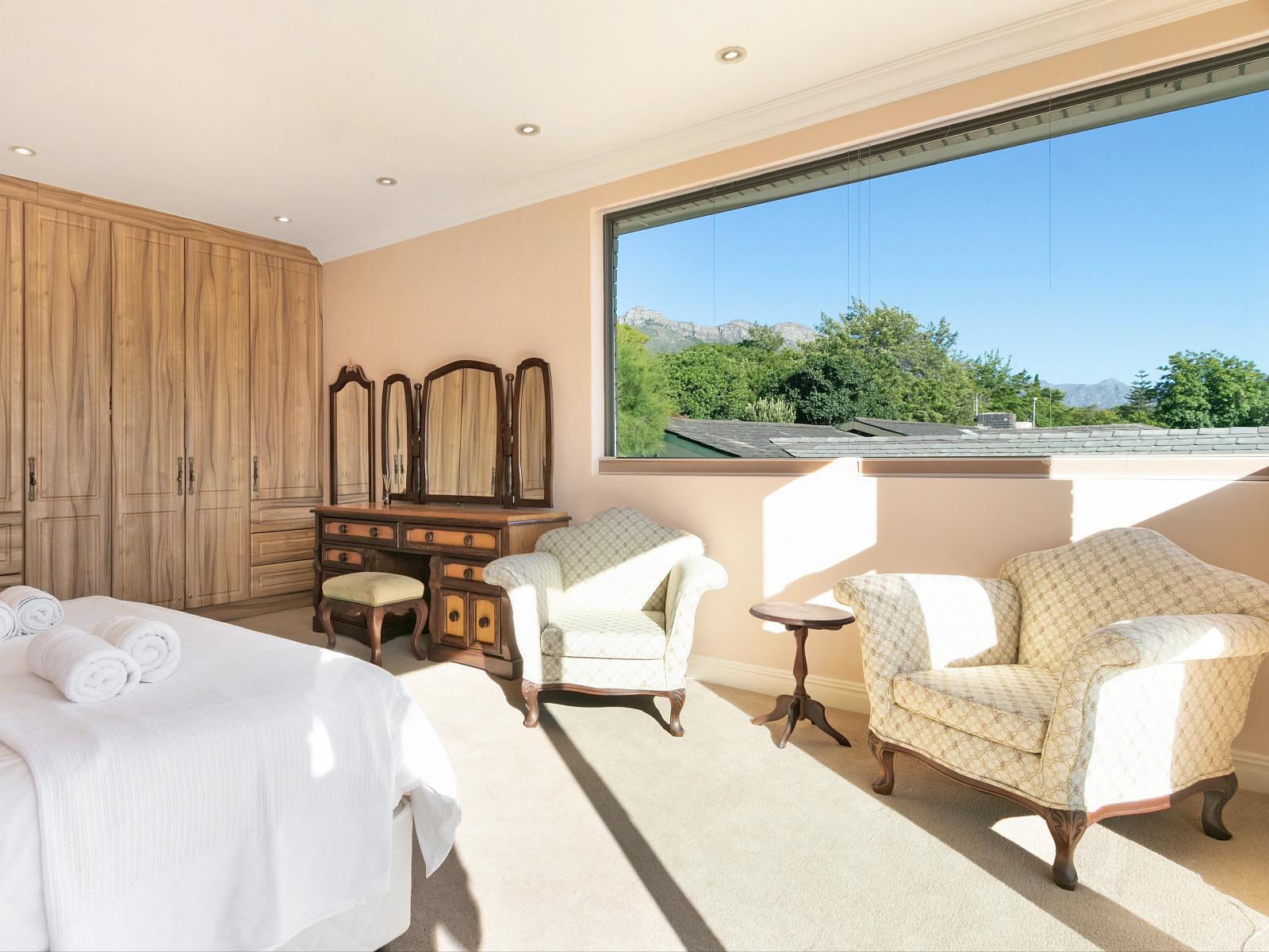 Indulge in the opulence of the upstairs bedrooms, where refined elegance meets sublime comfort. Bathed in natural light, these havens offer a serene sanctuary. The first bedroom is adorned with a luxurious queen-sized bed, enveloped in crisp linen, and affords you breathtaking mountain vistas from its balcony. Immerse yourself in relaxation in the exquisite en-suite bathroom, complete with a shower, bath, toilet, and basin. The second bedroom beckons with two ¾ beds, adorned with linen, and features a picturesque patio where you can revel in the beauty of your surroundings. This bedroom conveniently shares a bathroom, adorned with a shower, toilet, and basin. To ensure your absolute satisfaction, both bedrooms are equipped with air conditioning and fresh towels are provided in both bathrooms.