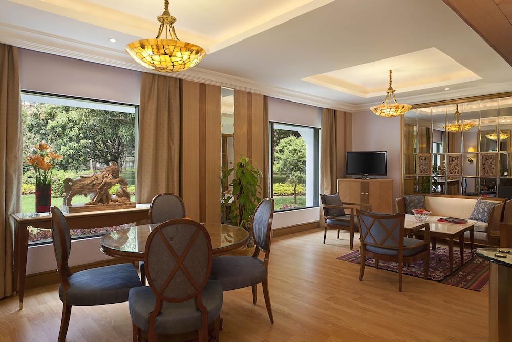 Trident Bhubaneswar is located in Bhubaneswar, 3.7 mi from the city center. It features an outdoor pool, 2953 feet jogging trek and 24-hour front desk. All rooms overlook the pool or garden. Free WiFi is available in the rooms of the property. Trident Bhubaneswar is a 15-minute drive from Bhubaneswar Airport. Bhubaneswar Railway Station is 3.7 mi away. Decorated in pleasant shades of pastel browns, rooms are fitted with a satellite TV, mini-bar and tea/coffee-making facilities. A hairdryer and personal safe are provided. This hotel features interiors inspired by traditional temple architecture of Odisha. It has a concierge desk and 24-hour business center. A doctor and babysitter are available on-call along with a boutique shop called Sandook. Guests can enjoy a selection of international dishes in the restaurant, which also offers room service. A selection of spirits, wines and cocktails can be enjoyed at The Bar.