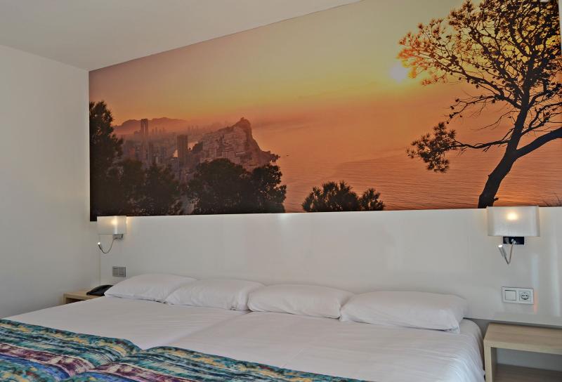 This wonderful hotel is set in Benidorm, in a stunning natural spot surrounded by swaying palm trees and marvellous sandy beaches. Alicante-Elche Airport is less than 53 kilometres away from this family-friendly establishment. Guests may find links of public transport in the proximity of the hotel, which will allow them to explore the area. Situated 3 kilometres from the centre of Benidorm, the hotel enjoys ease of access to a host of dining options, shopping opportunities and entertainment venues including a popular thematic park and waterpark. The establishment greets visitors with charming décor and welcoming atmosphere. The guestrooms are delightfully appointed and well equipped with en-suite bathrooms and modern amenities. The hotel also features a restaurant, bar and swimming pool with a hydromassage bathtub and a sundeck terrace provided with sun loungers. There are accessible facilities and free parking.