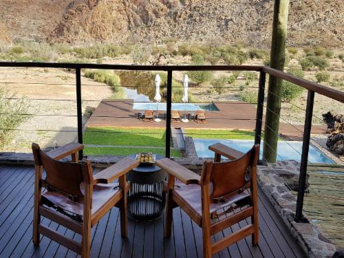 Surrounded by spectacular landscapes and scenery, Tutwa Desert Lodge offers accommodation in the Greater Augrabies area; a region known as the Green Kalahari, bordering the Orange River. Spacious rooms at Tutwa are decorated in neutral colours. Each is equipped with air conditioning, a fridge and tea-and-coffee-making facilities. The bathrooms have a bath and shower. All units feature a patio. FULL BOARD RATE at Tutwa Desert Lodge includes luxury accommodation and meals; excludes activities and drinks b