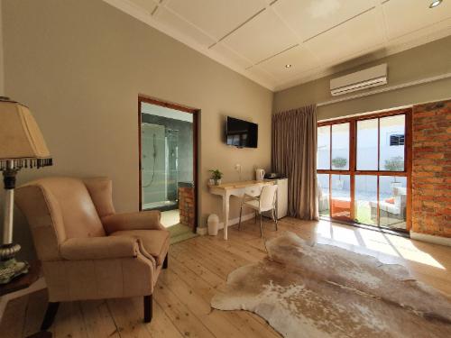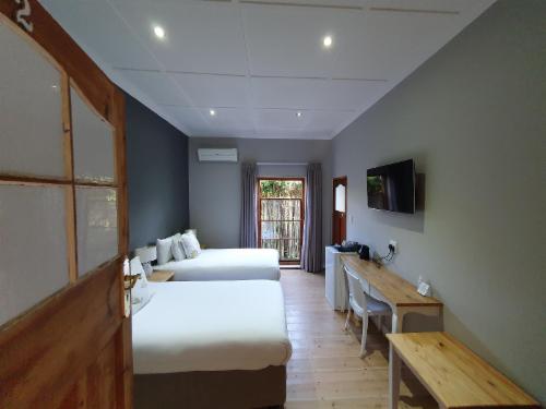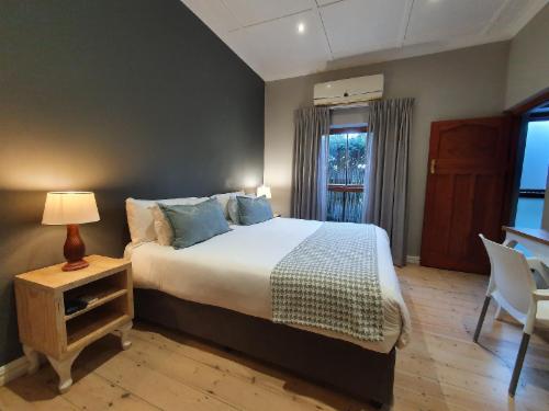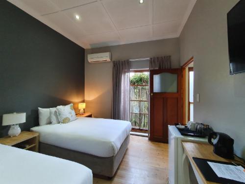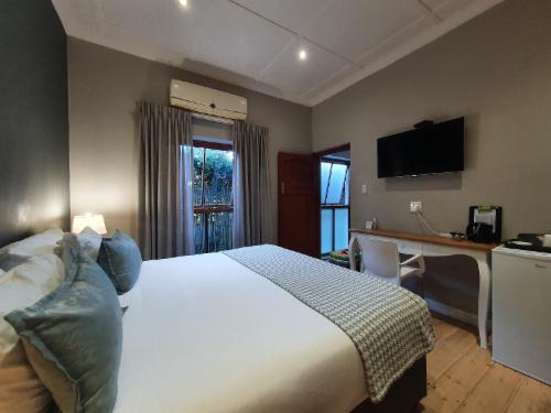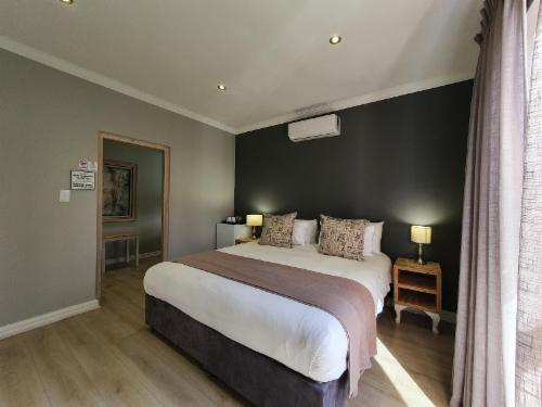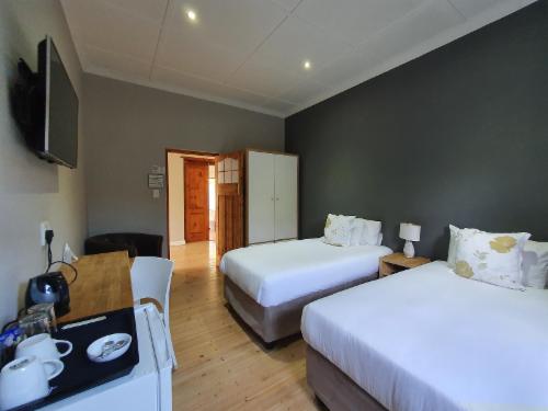 The Guesthouse has a Spacious Honeymoon Suite with Mountain views, two Large Luxury Rooms and one Standard room. We have an enclosed parking area for nine vehicles, and you can feel free to leave your vehicle on site when you feel like walking to any of the wonderful local restaurants or maybe the Botanical gardens.Each room can be transformed from a king-size bed to two three-quarter beds. 25 Channel DStv, Wi-Fi, coffee facility, hairdryer and shaver point in each room. Bed linen and towels are supplied for each room. All rooms have an en-suite bathroom.There is an out
