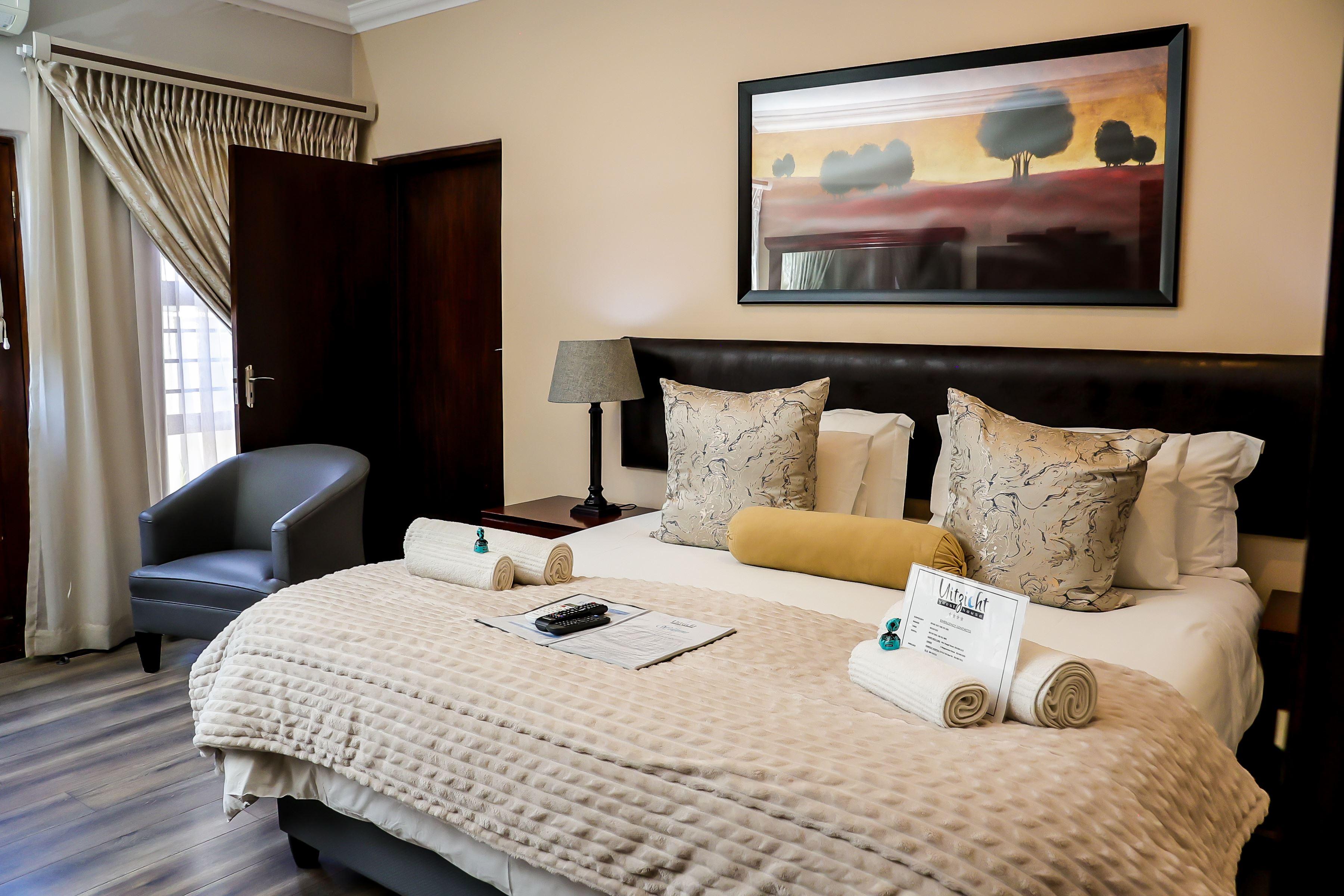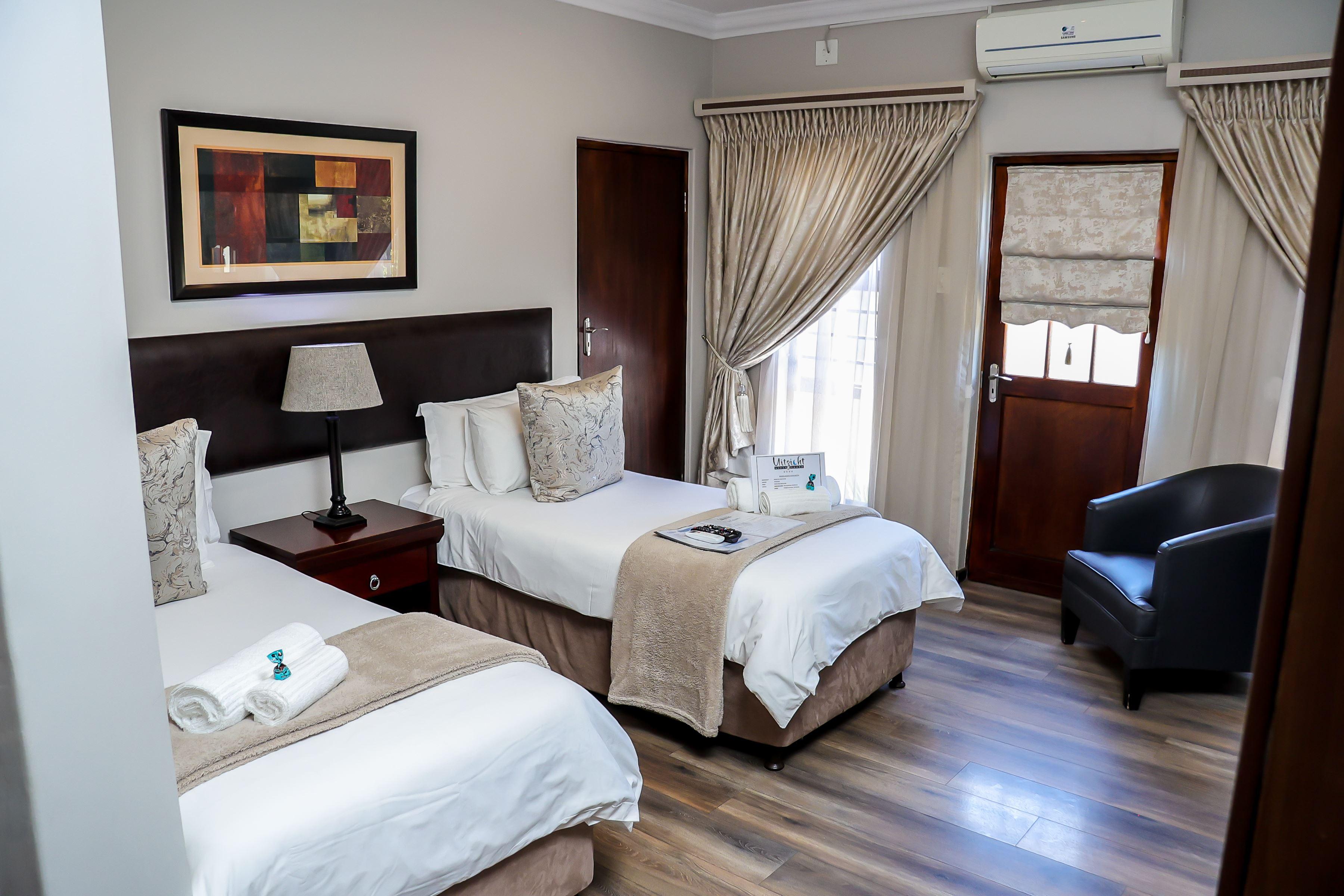 Uitzicht Guesthouse offers stylish, upmarket accommodation in Kimberley, the capital of the Northern Cape. Ideally situated, the guest house provides easy access to all major routes through the Diamond City and is conveniently close to key attractions and amenities.The property is within walking distance of local schools and Lenmed Royal Heart Hospital, and is located just a short distance from the North Cape Mall.Accommodation consists of 10 luxurious en-suite rooms, as well as a spacious family unit that comfortably sleeps up to four guests. Each room is well equipped