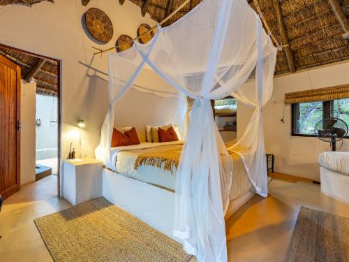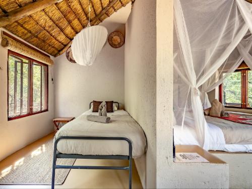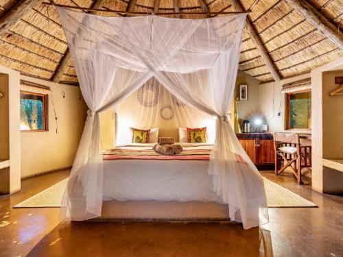 Enjoy a spectacular sunrise deep in the bush before returning to the camp for a hearty breakfast. Spend the heat of the day with a cool box of refreshments at one of our hides watching birds swoop down to the water and mammals materialising out of the bush. Or maybe laze in hammocks around our splash pool sipping iced drinks. During your evening drive, watch the white light of the moon take over from the flame-coloured sun while enjoying sundowners surrounded by the unique sounds of the African wilderness. At the end of your spotlighted night drive return to the welcoming comfort of Umlani, a bush camp in the tradition of old Africa, with the romantic glow of paraffin lamps to light your way. Enjoy pre-dinner drinks in the convivial bar overlooking the Nshlaralumi river course or around a roaring fire in the boma and watch our chef put the finishing touches to the dinner he has prepared on an open fire. The aromas will make your mouth water and you’ll be more than ready for a candlelit dinner accompanied by fine South African wines, while swopping stories and sightings with your fellow adventurers. Your comfortable en suite reed and thatch rondavel is calling but before falling into bed, take a steaming hot shower under a blanket of wondrous stars in your own open-air reeded bathroom. The magic is complete when the haunting sounds of nearby hyena and lion lull you to sleep.