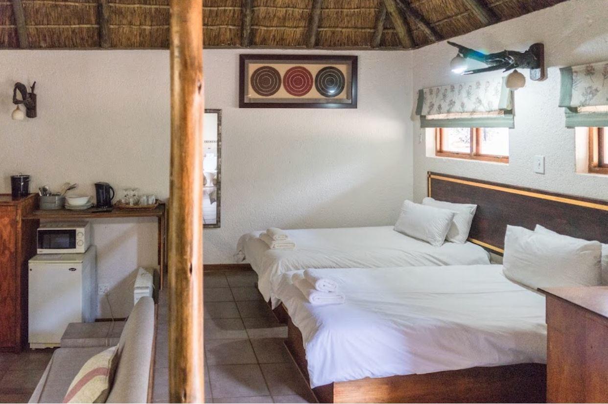 Mabalingwe Elephant Lodge holiday accommodation is an adequately furnished self-catering unit accommodating two people in the Mabalingwe Nature Reserve. This unit comprises its own private boma creating a bushveld atmosphere. The unit is open-plan comprising of twin beds, a private bathroom, fitted with bath as well as a shower overhead. Guests have access to a small kitchenette with a microwave, a stove, a fridge, cutlery as well as all crockery. Guests can enjoy activities such as Game drives, with a Lion-feeding every Sunday morning. Other activities in the area in
